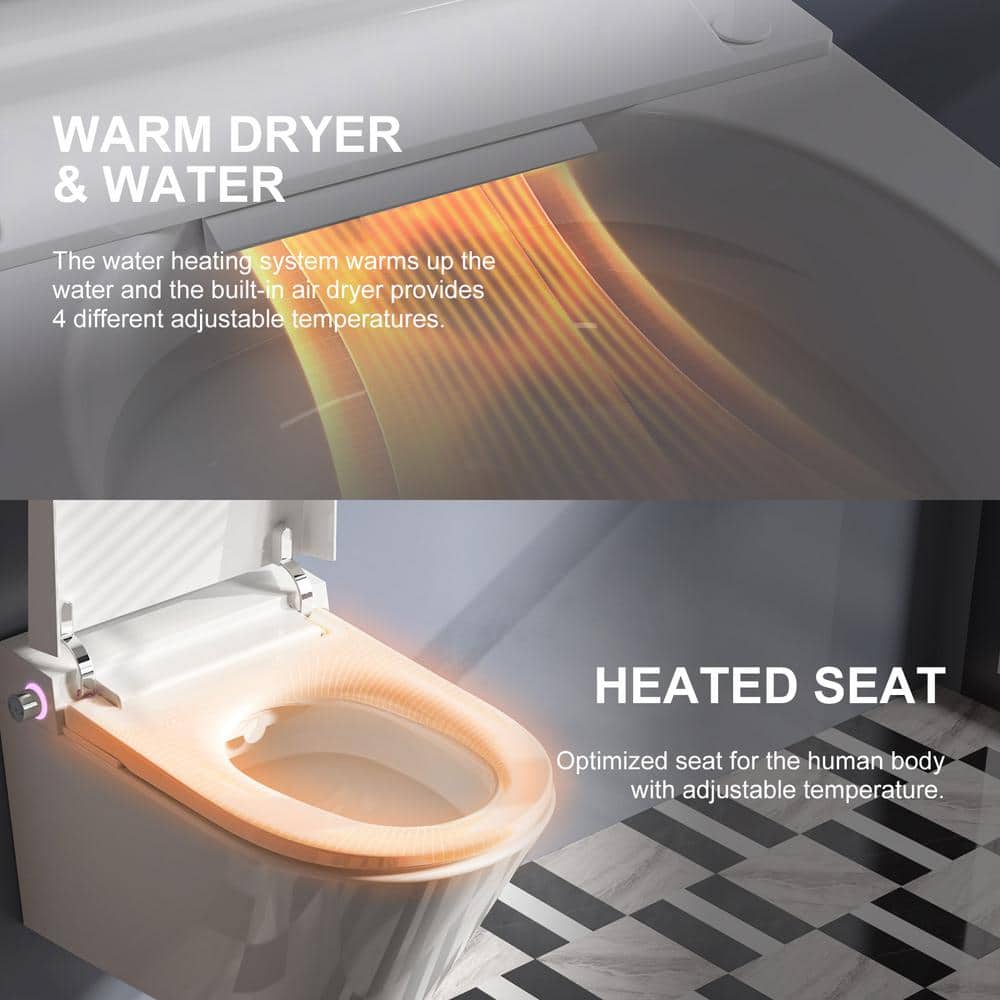 HOROW Wall Hung Elongated Smart Toilet Bidet with Night Light and Heated Seat