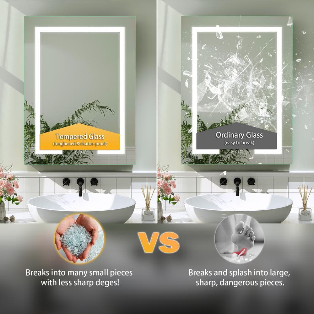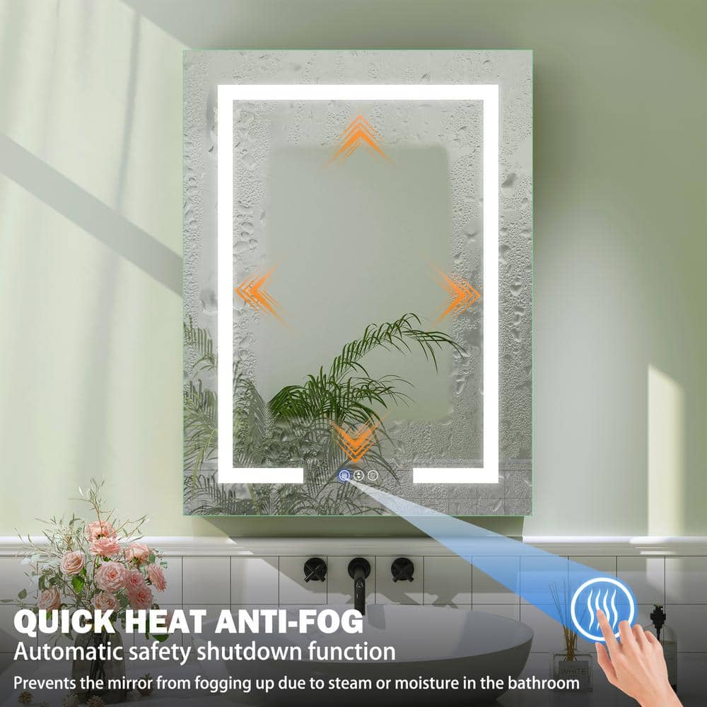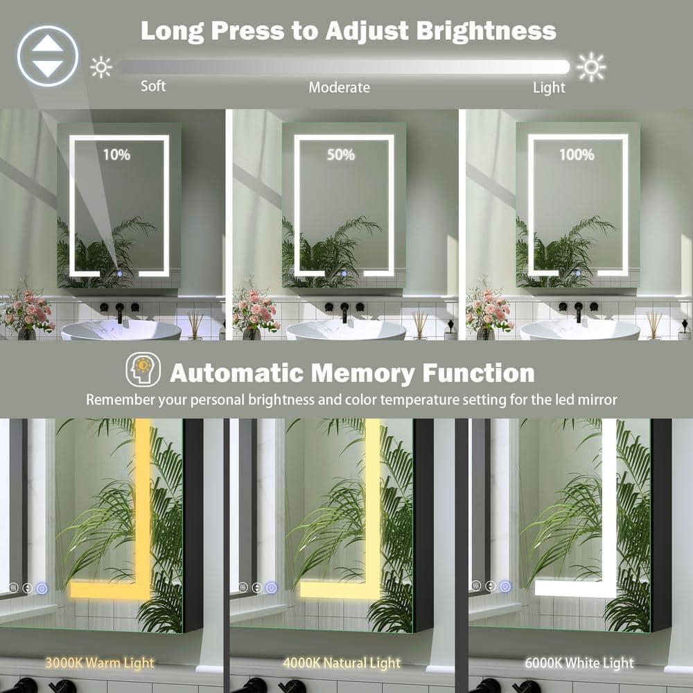 The Hpeytaire LED Frameless Medicine Cabinet offers a sleek, modern design for any bathroom. With its adjustable brightness and anti-fog technology, enjoy clear reflections and optimal lighting tailored to your needs. Constructed from durable, moisture-resistant aluminum, this cabinet is both functional and stylish, providing ample storage and convenience in a compact design.