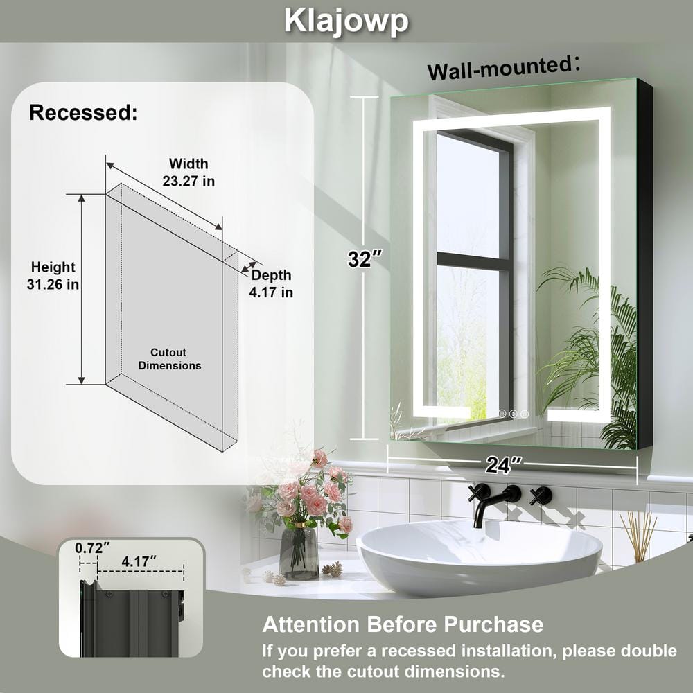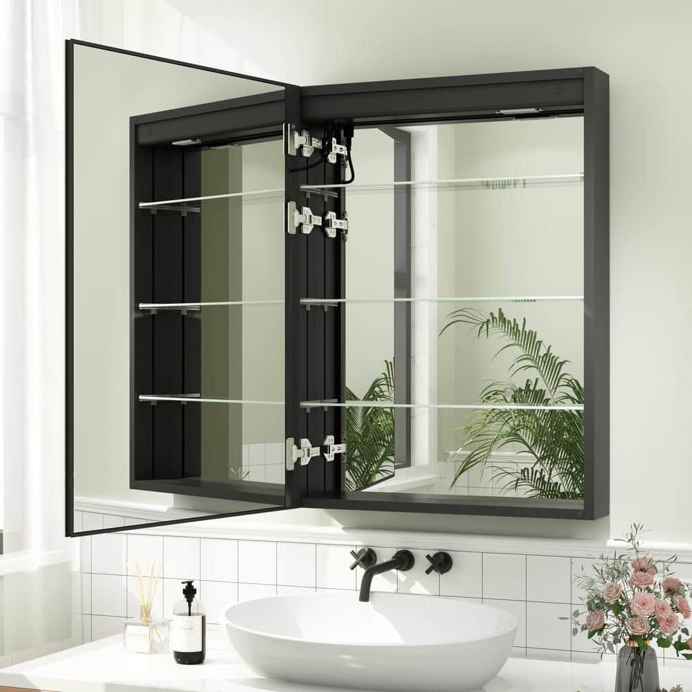 Hpeytaire 32 in. W x 24 in. H Rectangular Aluminum Recessed/Surface Mount Left Hinge Frameless Medicine Cabinet with Mirror Black
