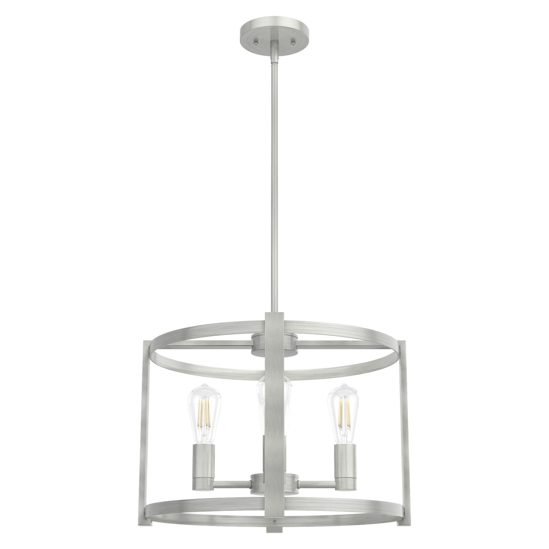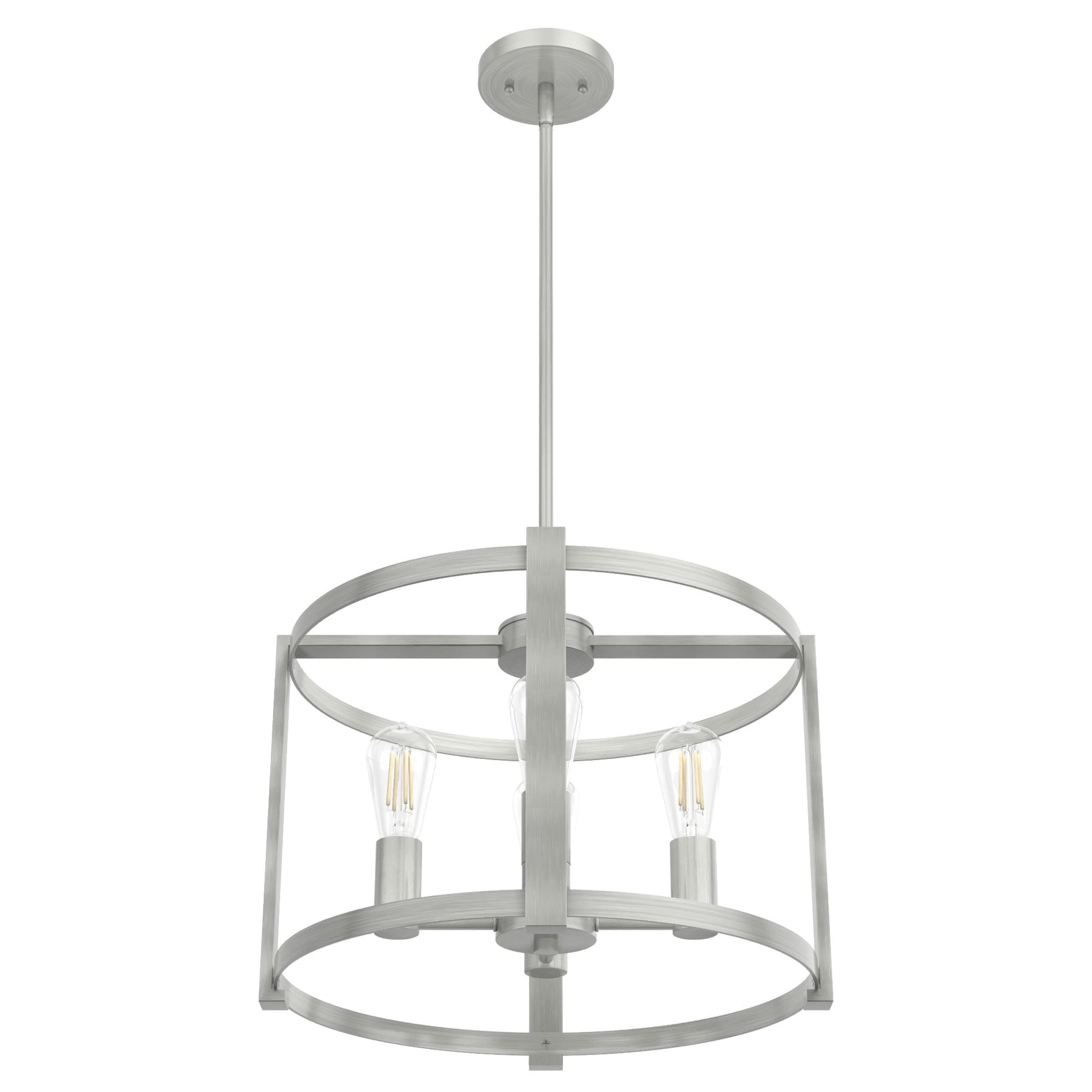 Illuminate your living space with the elegant Hunter Astwood 4-Light Chandelier. Its transitional design boasts a luxurious brushed nickel finish, making it an eye-catching centerpiece in any room. Perfect for professionals and DIY enthusiasts, this fixture offers flexible hanging options to suit various ceiling heights and is compatible with sloped ceilings.