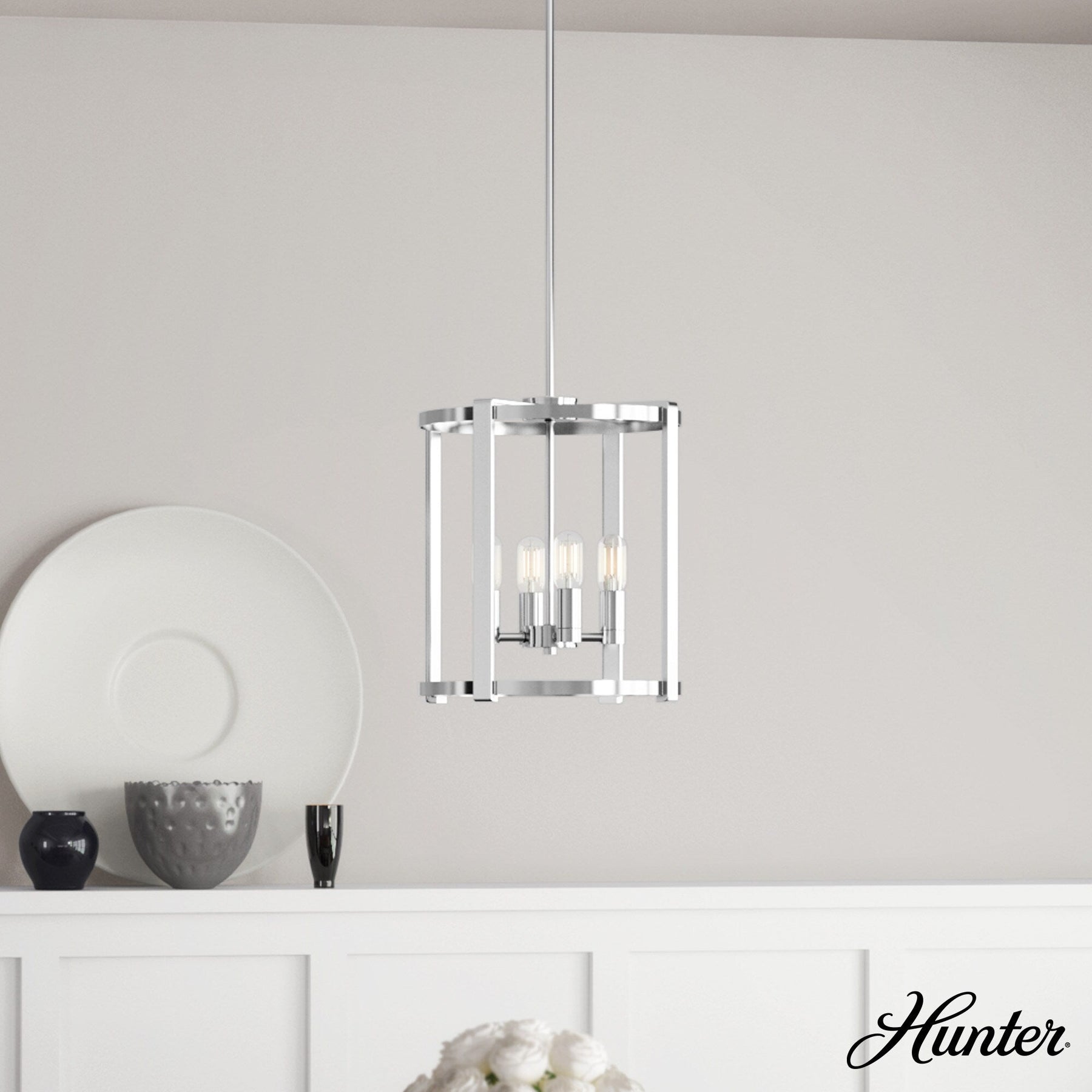 Illuminate your space with the sophisticated Hunter Astwood 4-Light LED Chandelier, boasting a polished nickel finish and elegant design. Ideal for enhancing kitchens, living rooms, and dining areas, this chandelier provides a timeless aesthetic with its transitional styling and customizable hanging length.