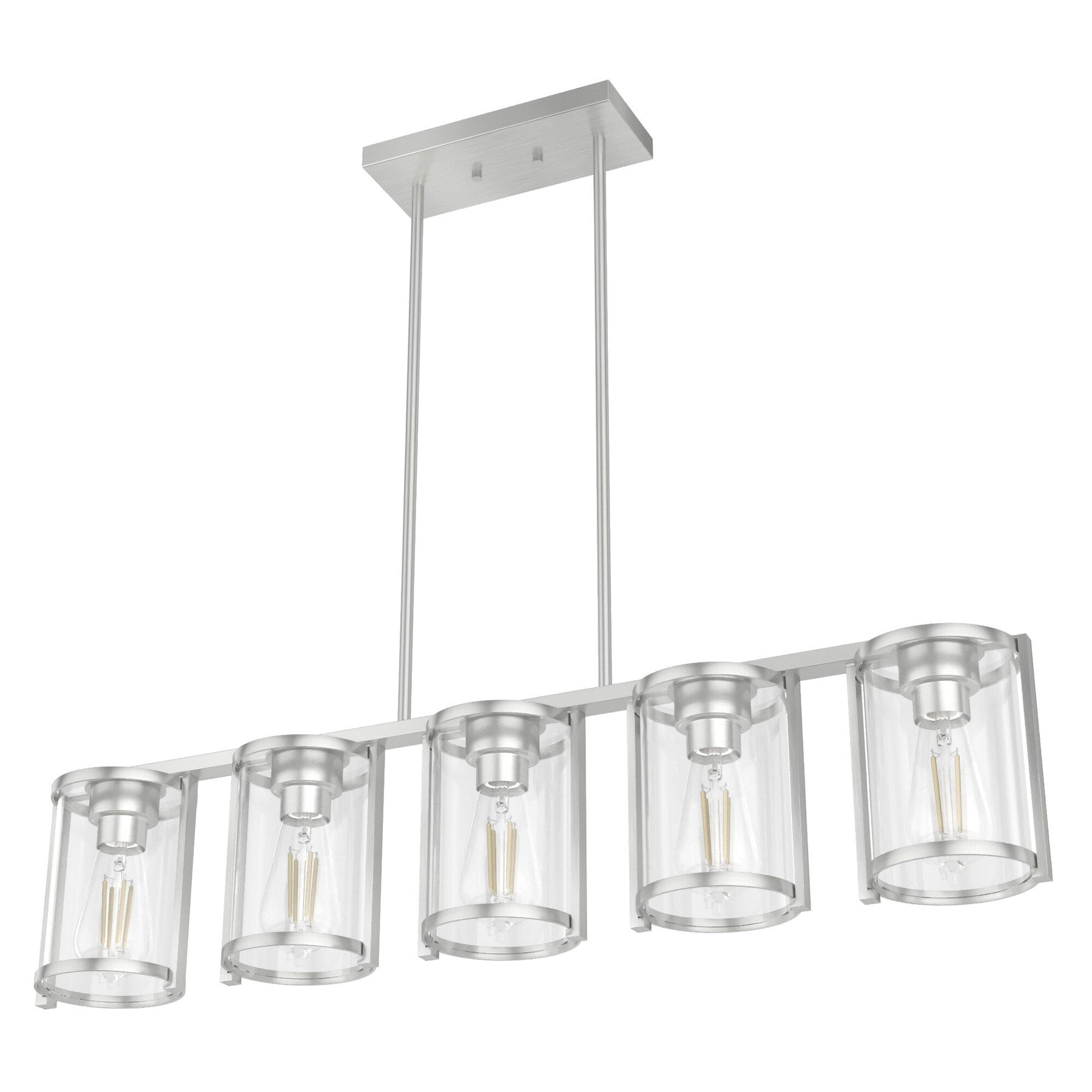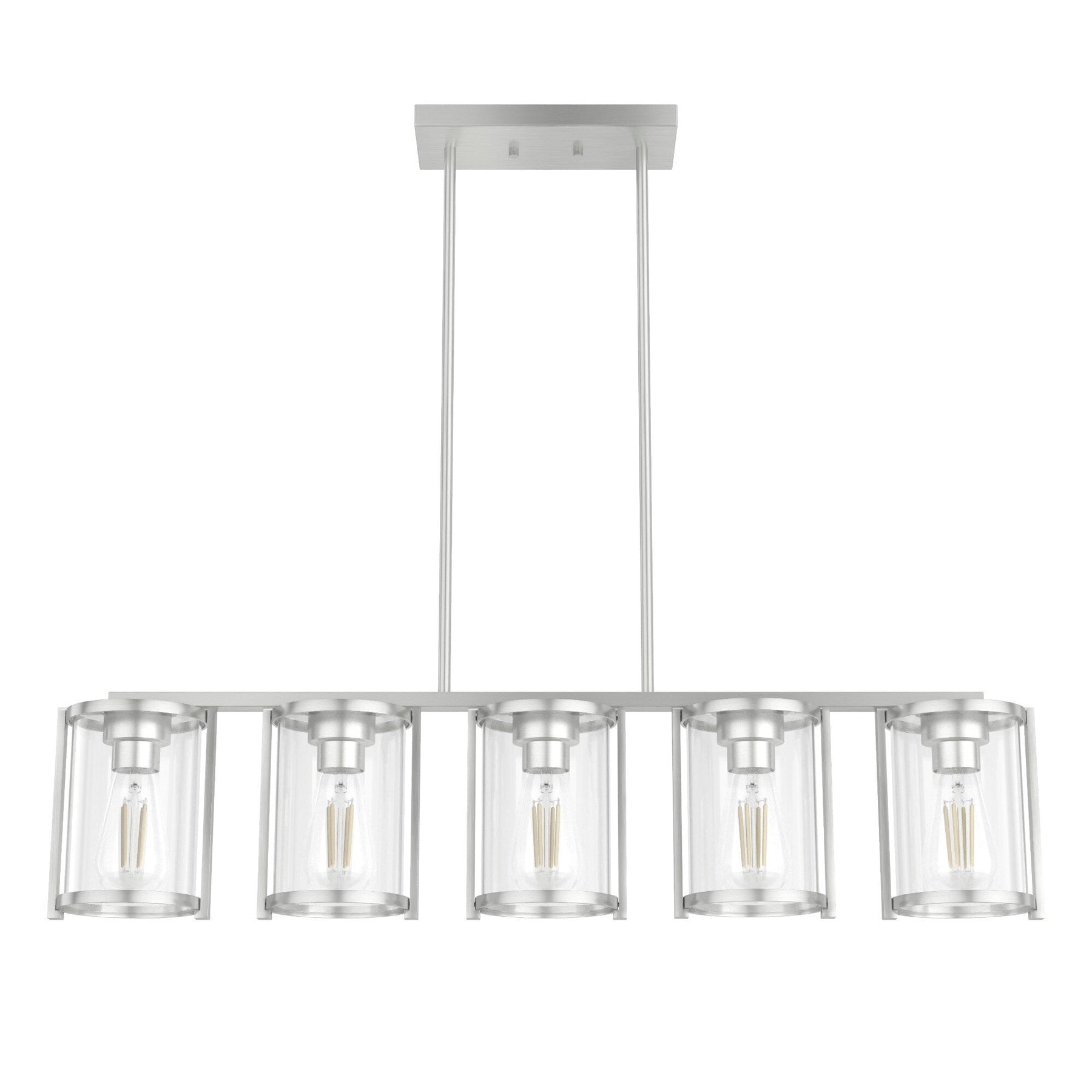 The Astwood 5-Light Brushed Nickel Chandelier by Hunter brings a touch of glam with its sophisticated design. Its premium caged framing with clear glass shades offers a stylish solution for illuminating kitchens, living rooms, dining areas, and more. This chandelier combines elegance with practicality, making it a sought-after piece for both pros and DIY enthusiasts.