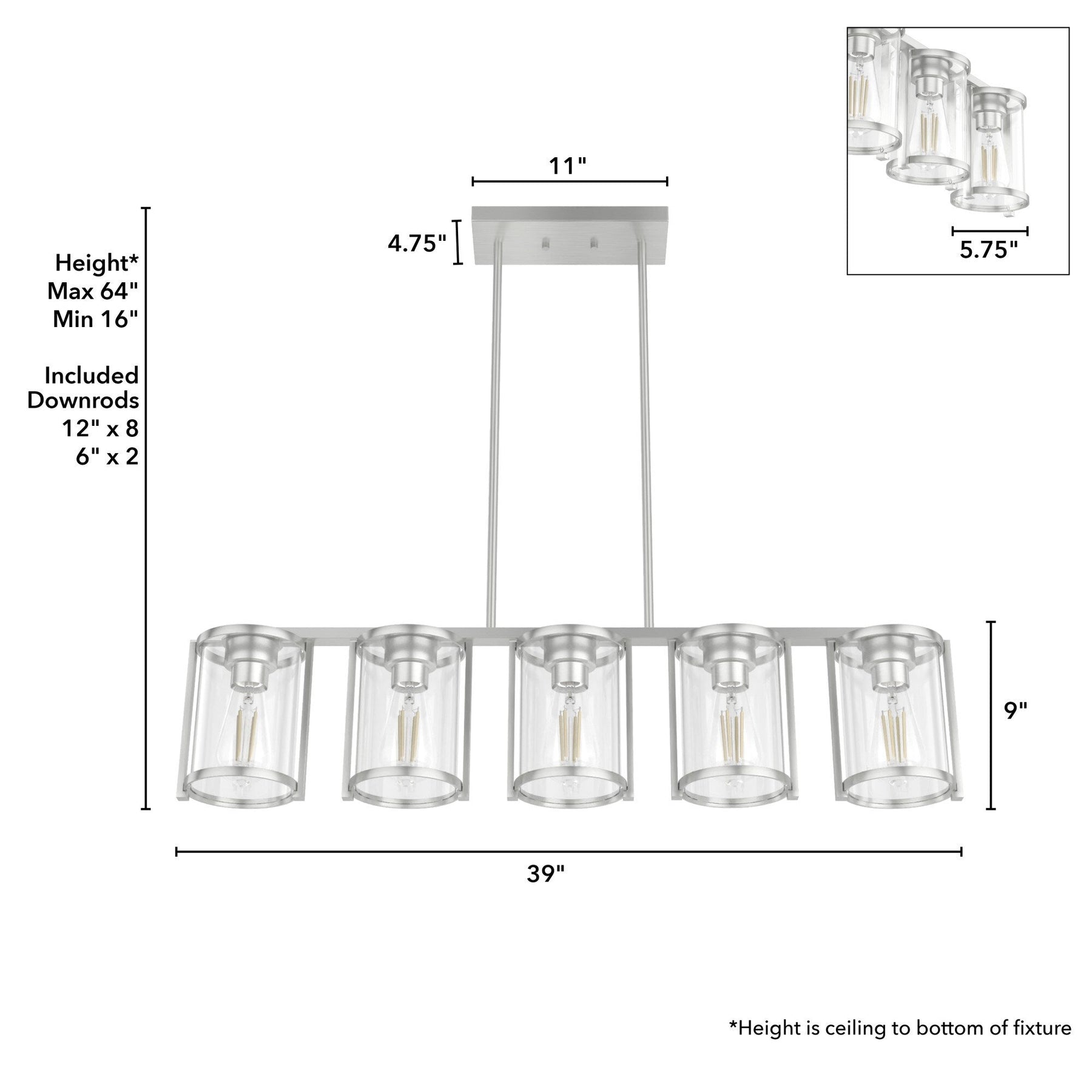 Infuse your living area with the timeless elegance and modern flair of the Astwood Chandelier. This fixture, with its exquisite brushed nickel finish and clear glass shades, not only elevates aesthetic appeal but creates a focal point that commands attention. Hanging gracefully, its adaptable height makes it ideal above dining tables or in entryways, casting a warm, inviting glow. The Astwood Chandelier becomes an indispensable addition to your home, setting a luxurious ambiance that speaks to your unique style.