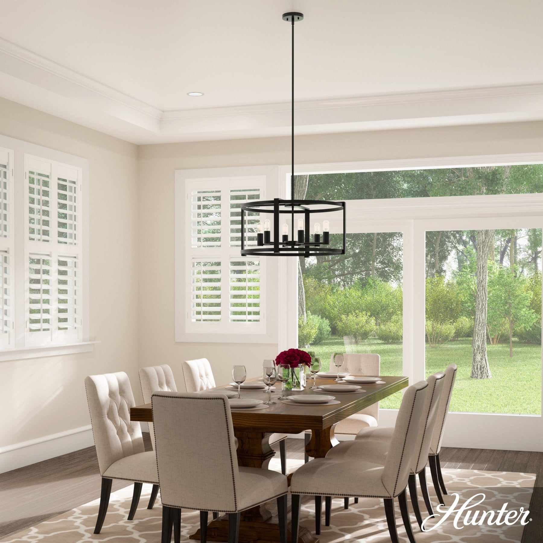 Illuminate your space with the sophisticated Hunter Astwood 6-Light Matte Black Chandelier. Its transitional design and matte black finish add a touch of elegance to any room, seamlessly integrating into kitchens, foyers, and dining areas. With adjustable hanging lengths and a robust build, this chandelier is perfect for both professional and DIY installations.