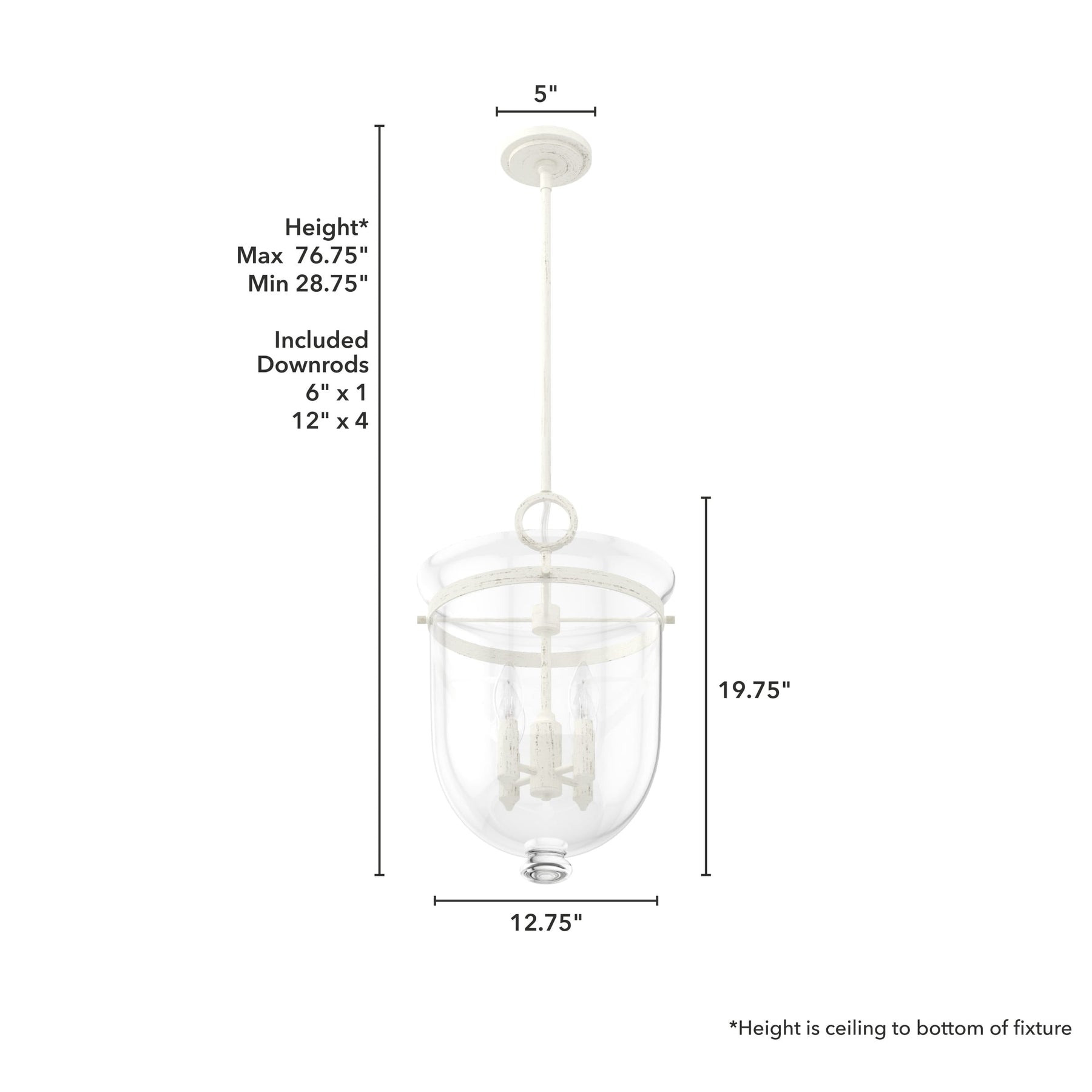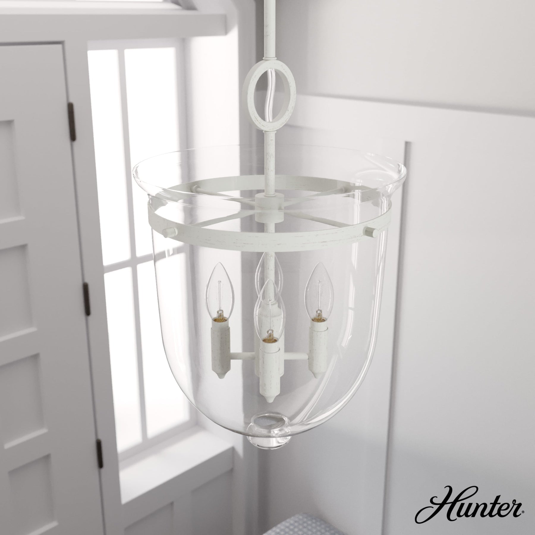 Hunter Belltown 4-Light Rustic White Transitional Clear Glass Urn LED Medium Hanging Pendant Light