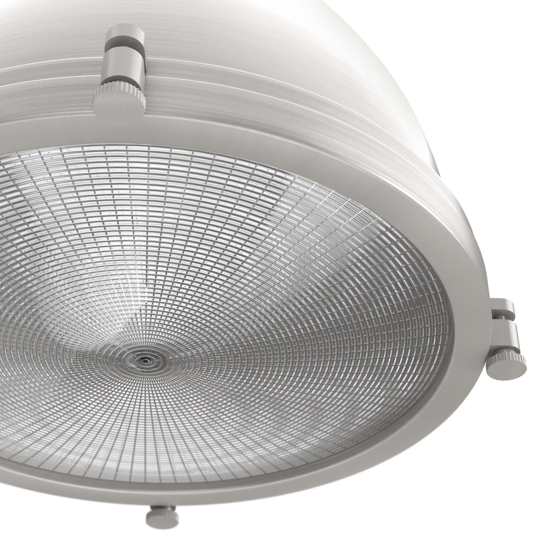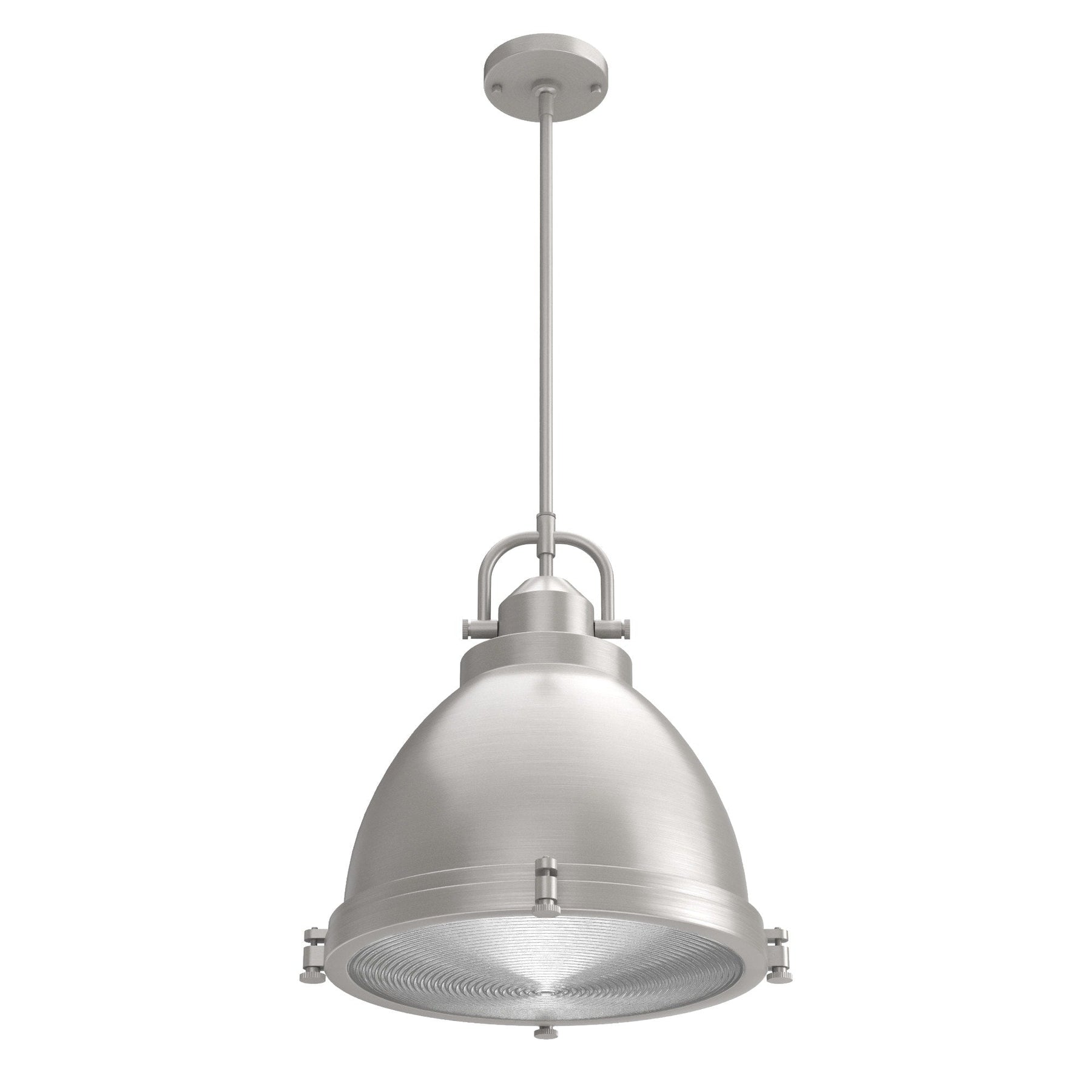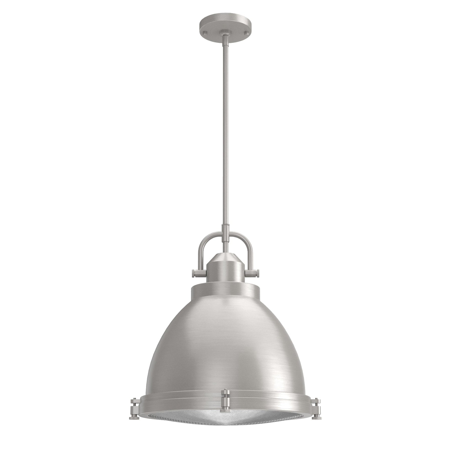 Premium Design: Features a brushed nickel finish with clear holophane glass, blending industrial style with modern elegance.