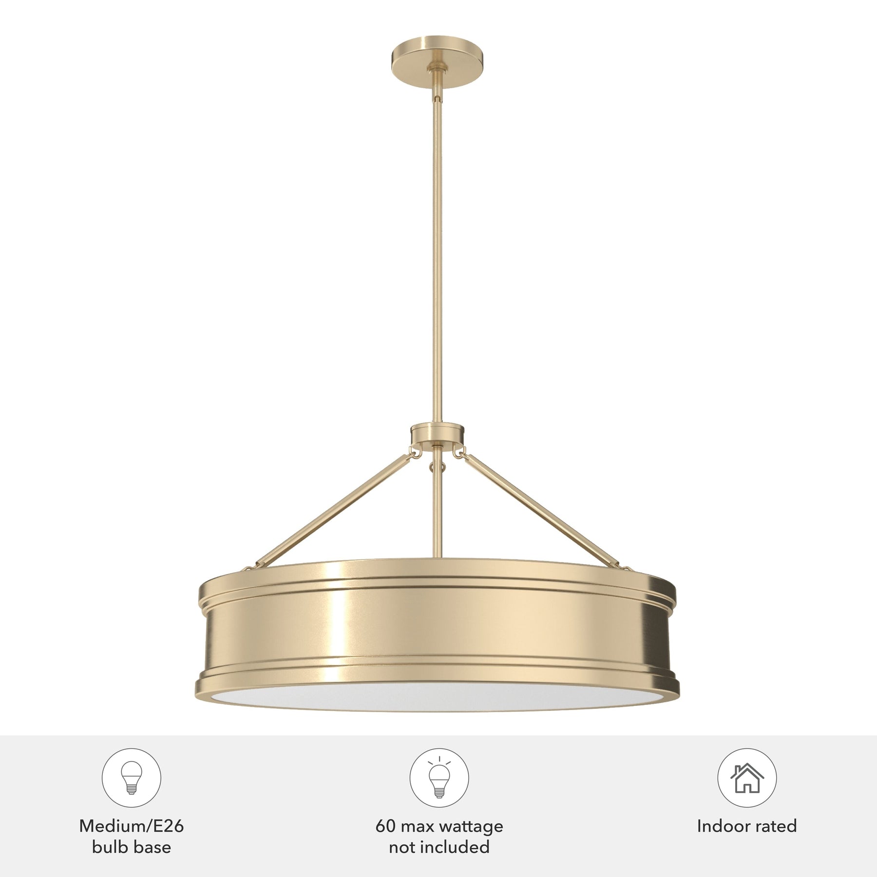 Illuminate your space with elegance and sophistication using the Hunter Capshaw 6-Light Alturas Gold Drum Pendant Light. This stunning fixture features a classic drum shape in a luxurious gold finish, complemented by frosted glass shades to deliver a warm, inviting glow. Ideal for kitchens, dining rooms, or foyers, it seamlessly merges traditional charm with modern functionality.
