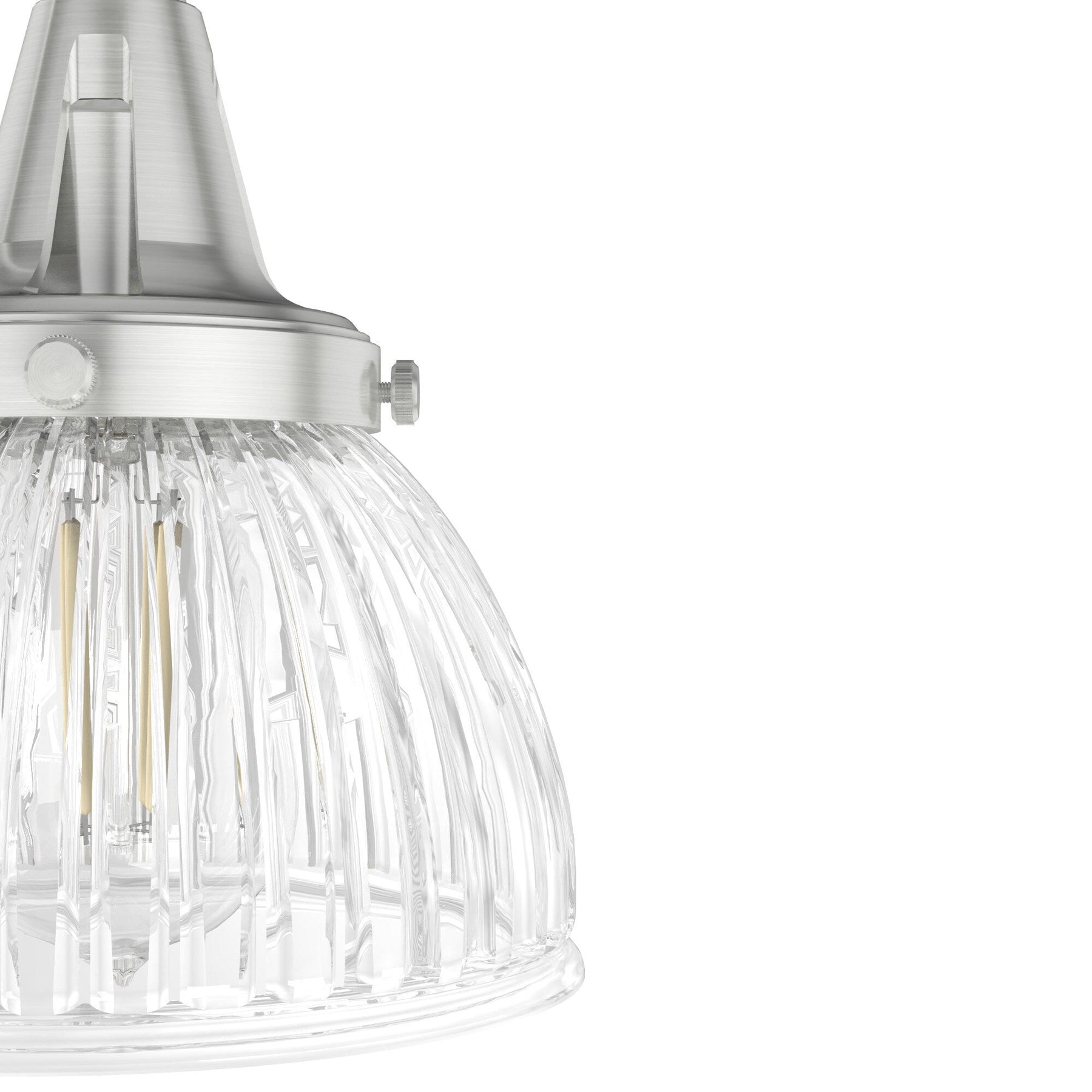 Premium Design: Blends modern influences with transitional style, featuring a brushed nickel finish and clear holophane glass.