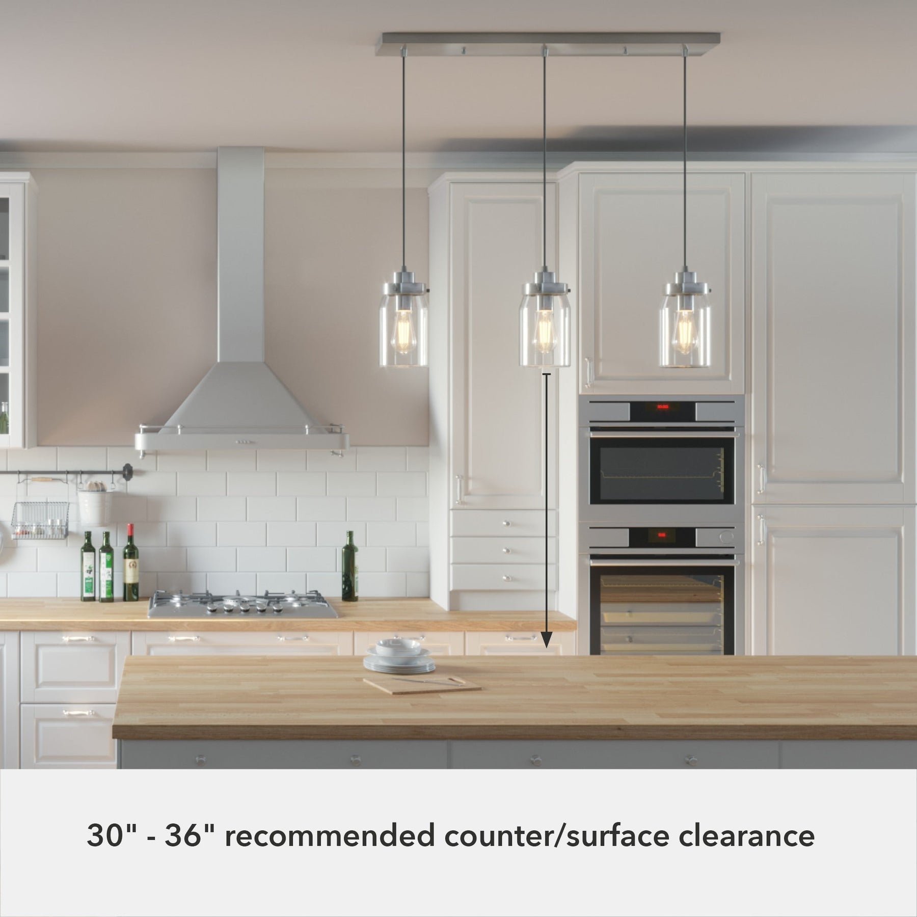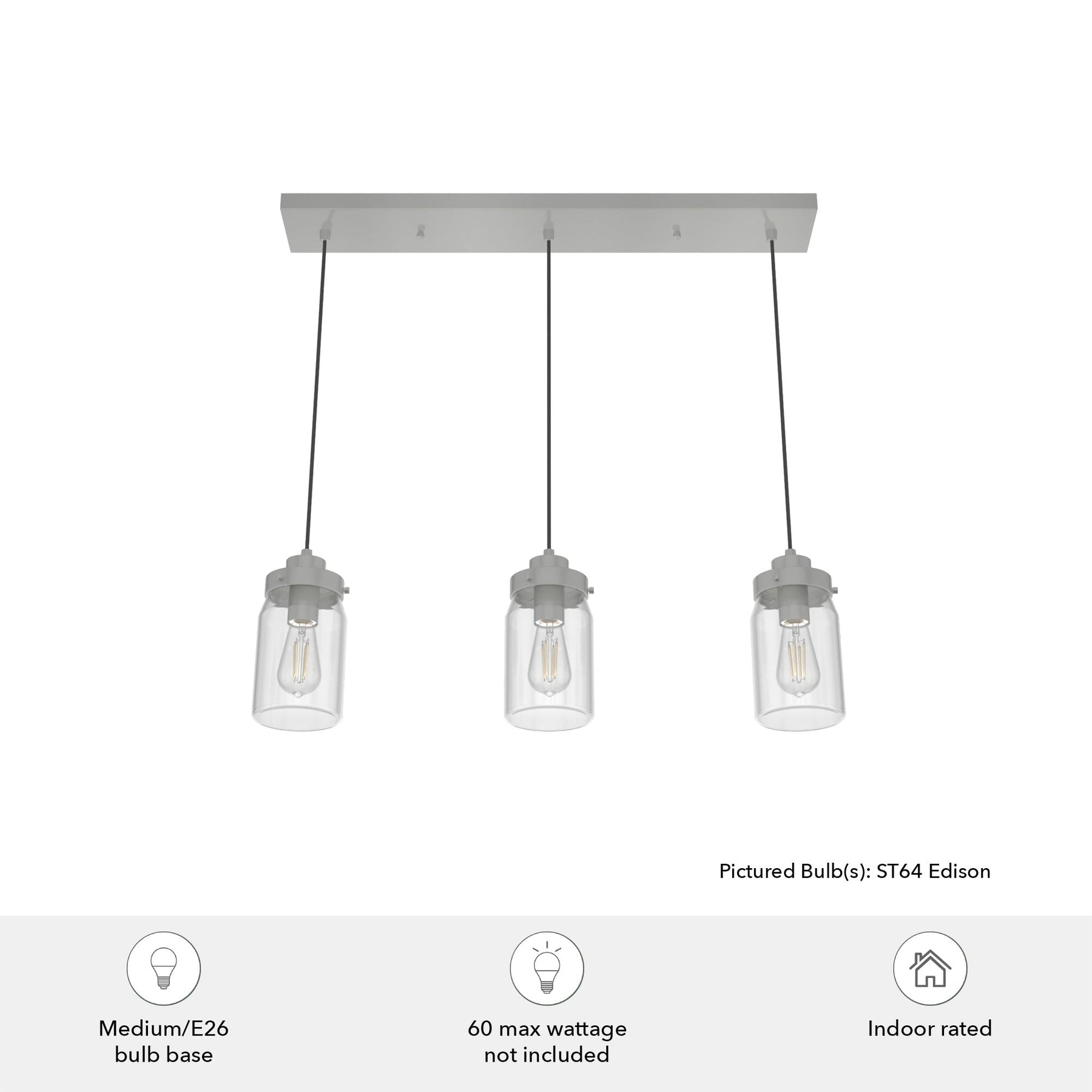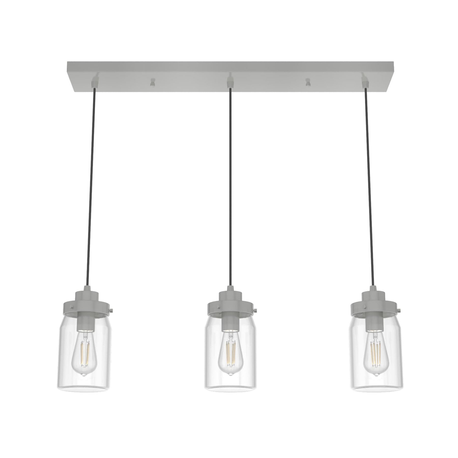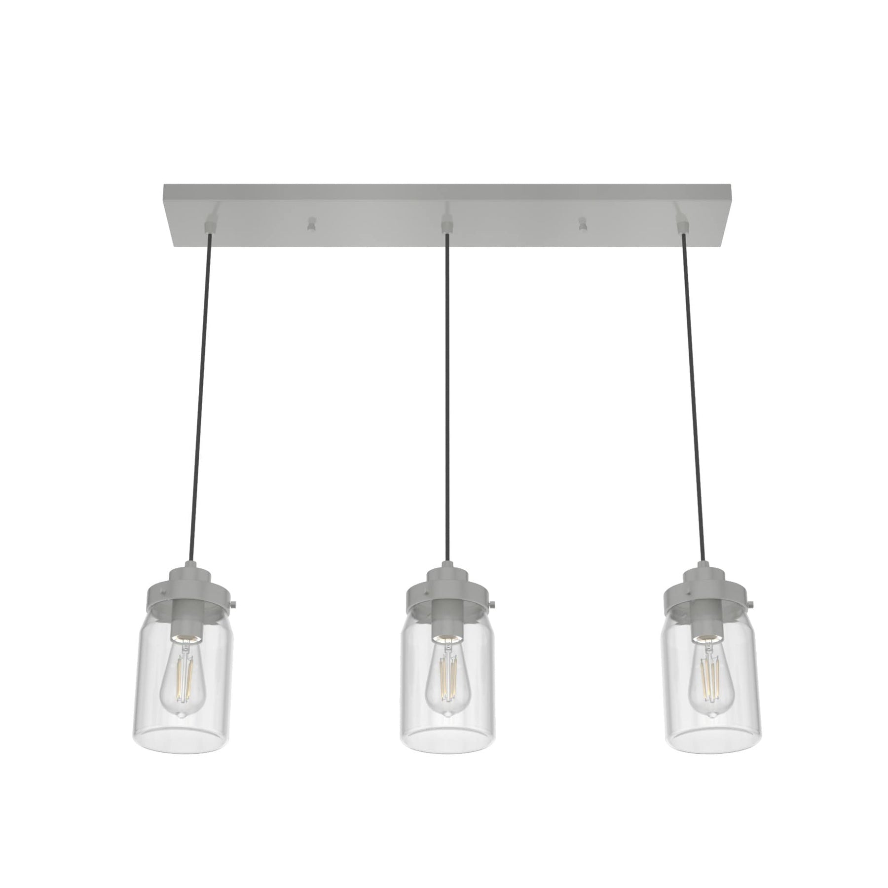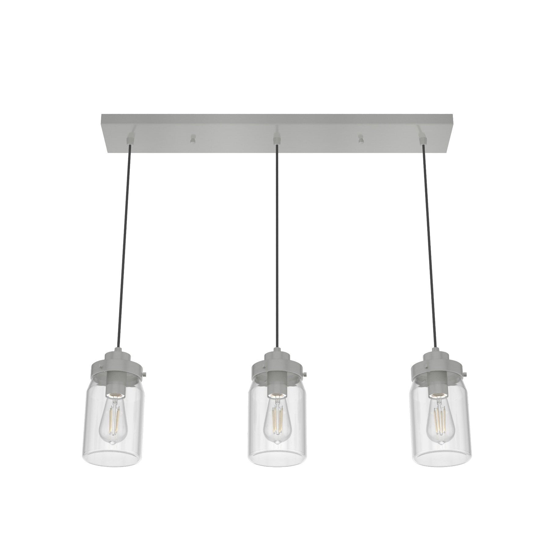 Hunter Devon Park 3-Light Brushed Nickel Farmhouse Clear Glass Linear LED Large Hanging Kitchen Island Light
