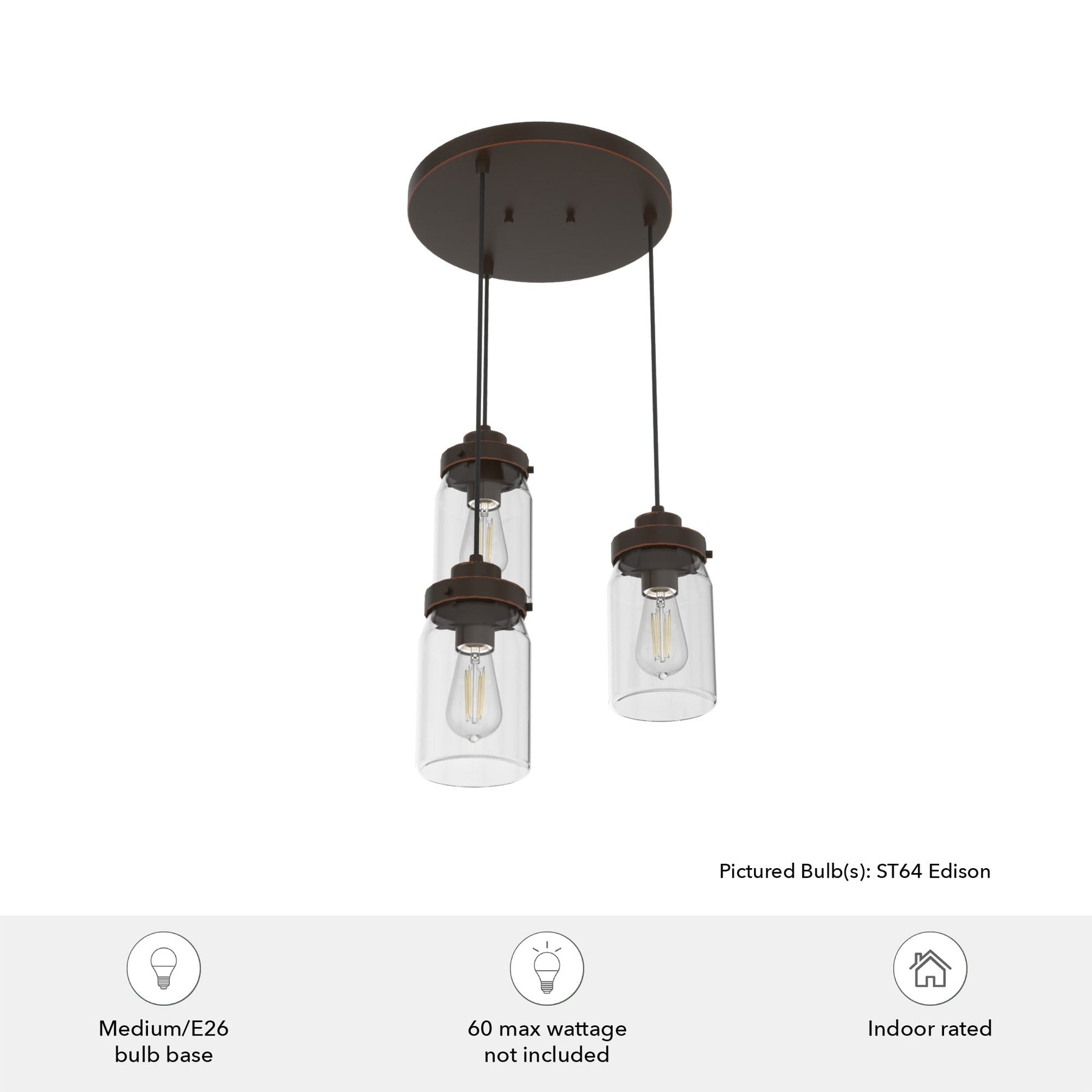 Illuminate your home with the Hunter Devon Park 3-Light Pendant Light, a beautifully crafted farmhouse fixture with a charming onyx bengal finish. Its premium clear glass shades offer a timeless design while providing ample lighting to any kitchen, living room, or dining area.