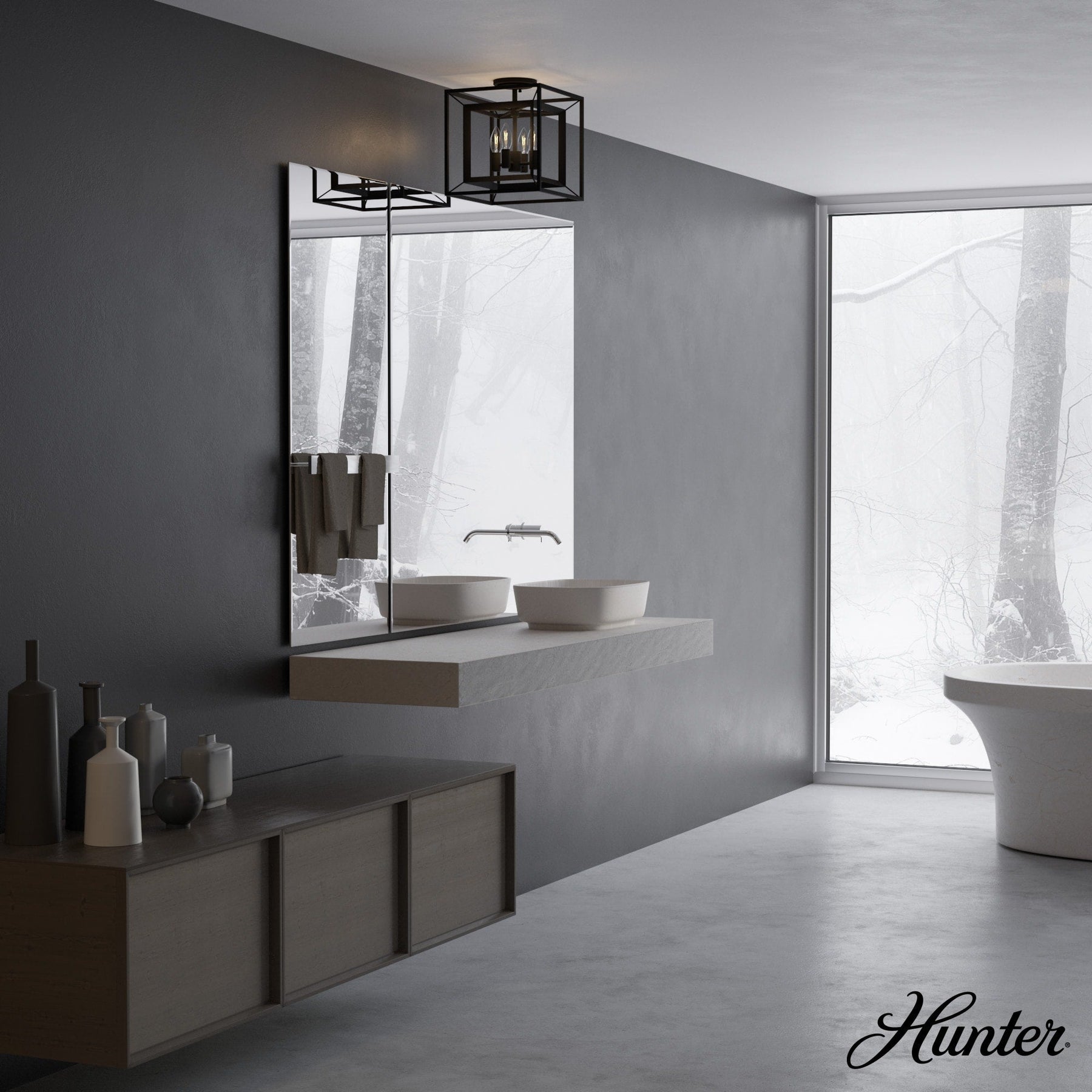 Hunter Doherty 4-Light Natural Iron Industrial Square LED Medium Hanging Convertible Pendant/semi-flush