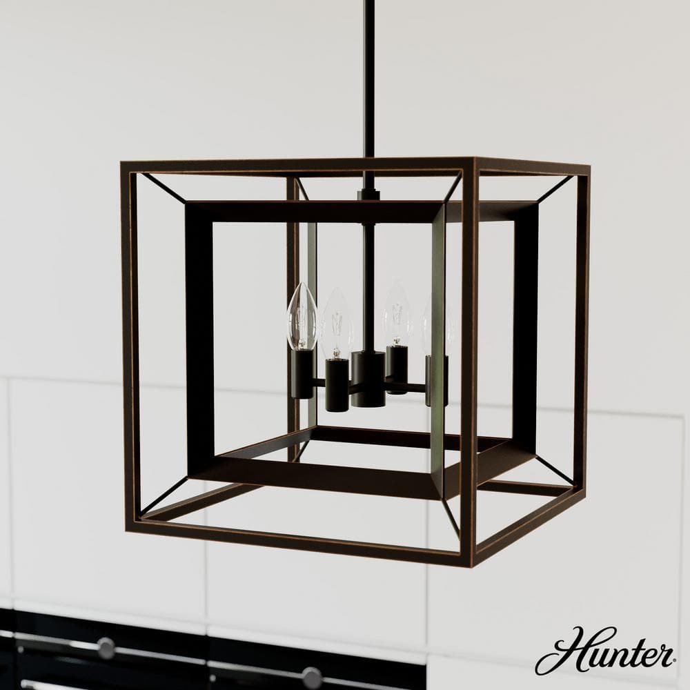 Illuminate your space with the sophisticated elegance of the Hunter Doherty 4-Light Onyx Bengal Island Chandelier. Known for its bold geometric design and warm, candle-like luminescence, this fixture beautifully enhances dining rooms, foyers, and kitchens. Durable construction and versatile hanging options make it a premier choice for both pros and DIY enthusiasts.