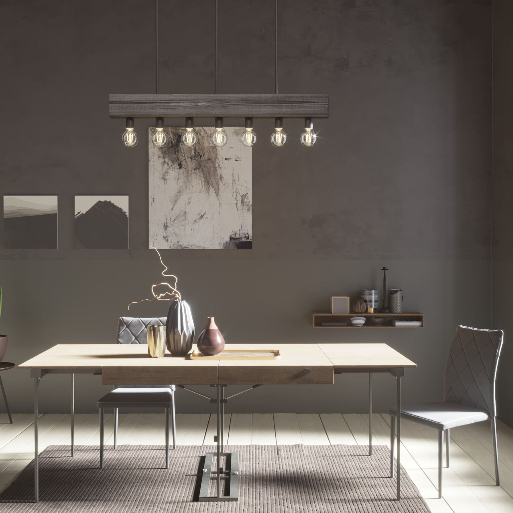 The Hunter Donelson 7-Light Chandelier captivates with its industrial charm and modern sophistication. Suspended like a work of art, the exposed bulb design invites you to play with light, transforming any room into a curated gallery. Ideal for open-concept kitchens or loft-style dining rooms, it effortlessly elevates the ambience with its sleek, linear form. This chandelier is not just lighting—it’s a statement of style, offering the perfect balance of form and function for luxurious living.