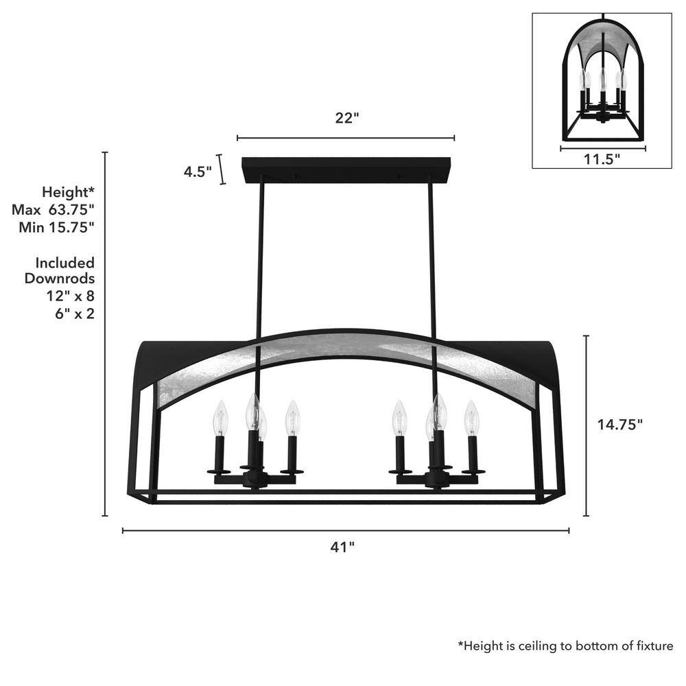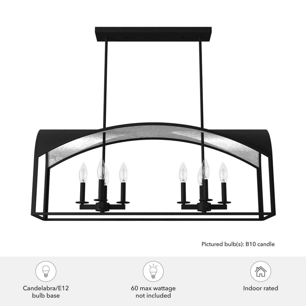 The Hunter Dukestown 8-Light Island Chandelier brings a touch of elegance to any space with its striking natural iron finish and delicate silver leaf detailing. Ideal for kitchens or dining rooms, this chandelier combines traditional design elements with modern sophistication to provide brilliant illumination and stylish appeal.