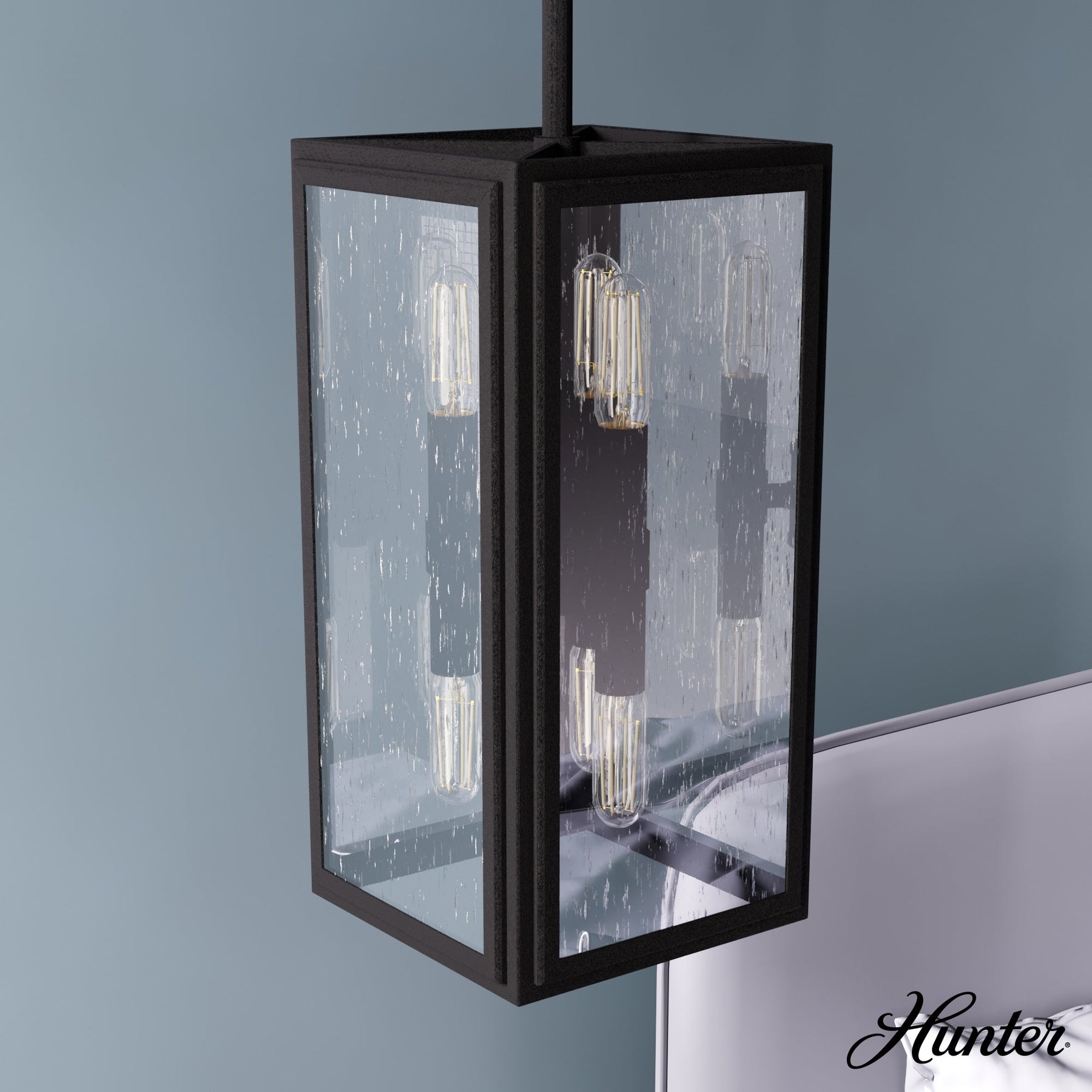 Hunter Felippe 6-Light Natural Iron Modern/Contemporary Seeded Glass Lantern LED Mini Hanging Pendant Light