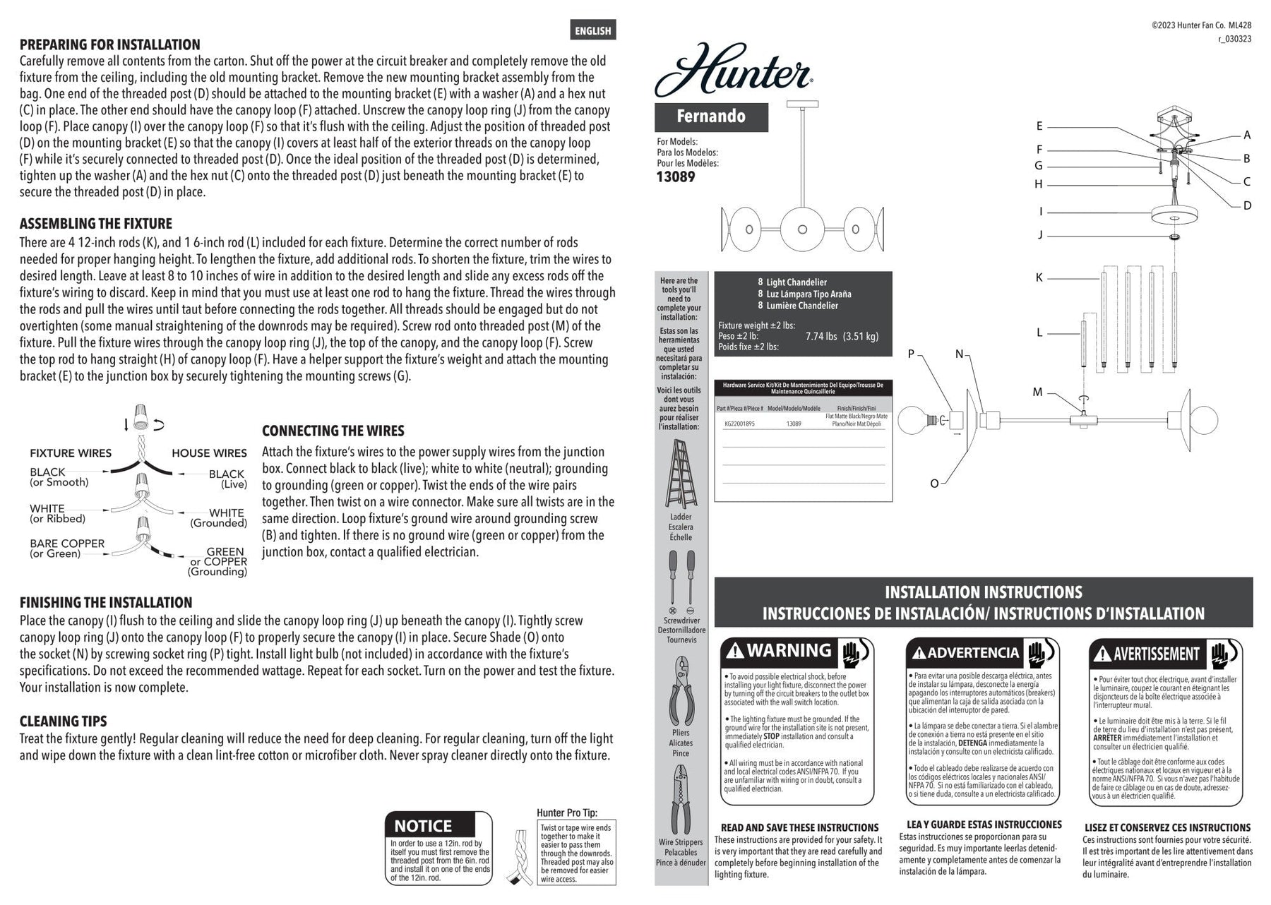 A: The Hunter Fernando Chandelier is designed for easy installation, with minimal assembly required. Basic electrical experience is suggested, and all necessary hardware and clear instructions are included.