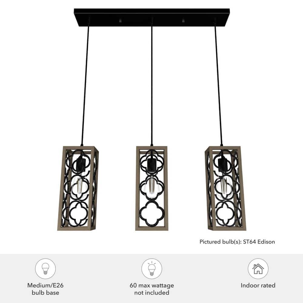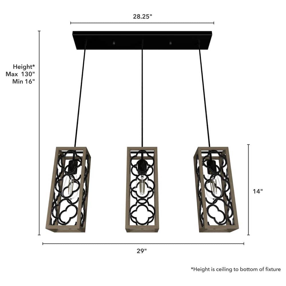 Hunter Gablecrest 3 Light French Oak Linear Chandelier with Metal Shades Kitchen Light