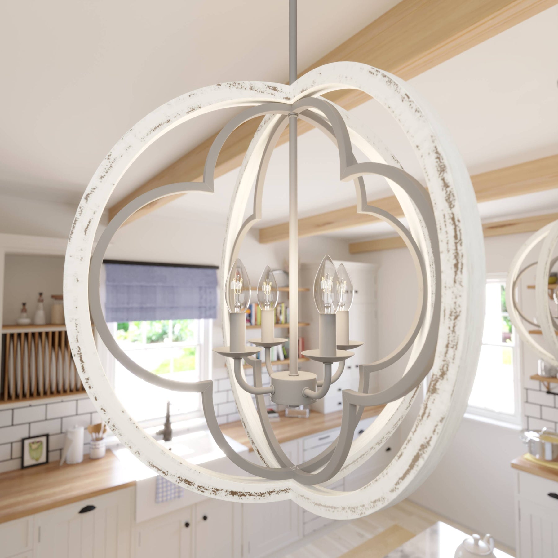 Hunter Gablecrest 4-Light Concrete with Rustic White Rustic Geometric LED Large Hanging Pendant Light