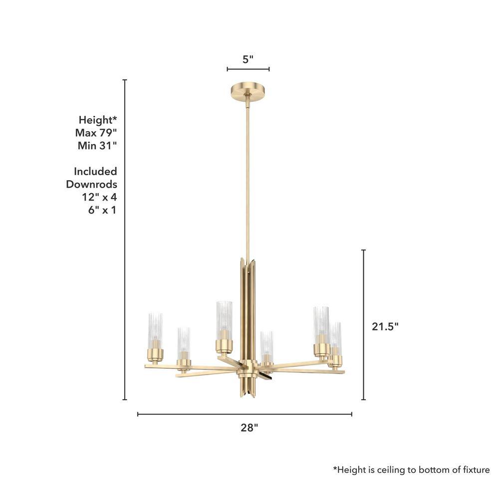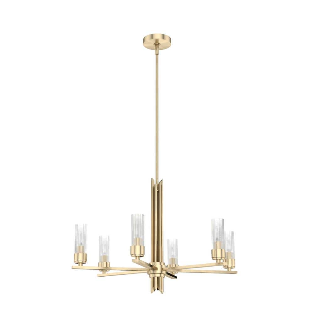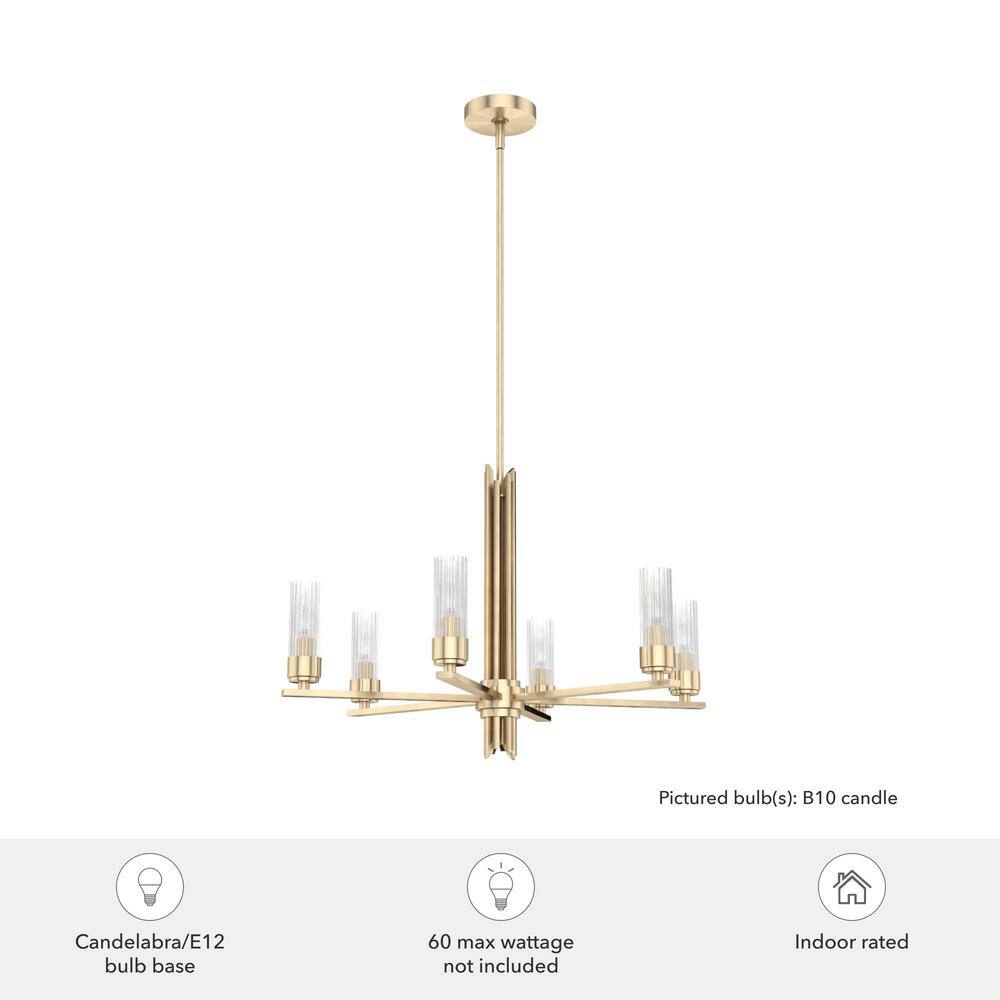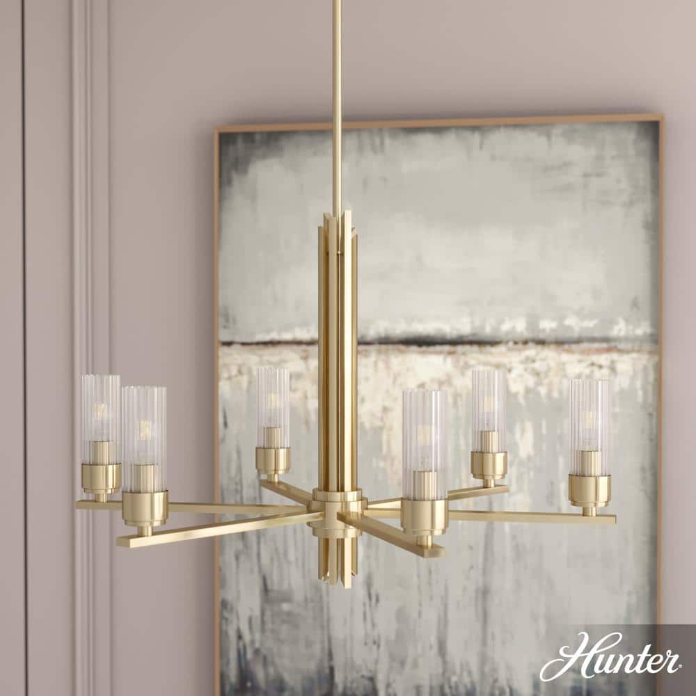 Hunter Gatz 6-Light Alturas Gold Candlestick Chandelier with Ribbed Glass Shades