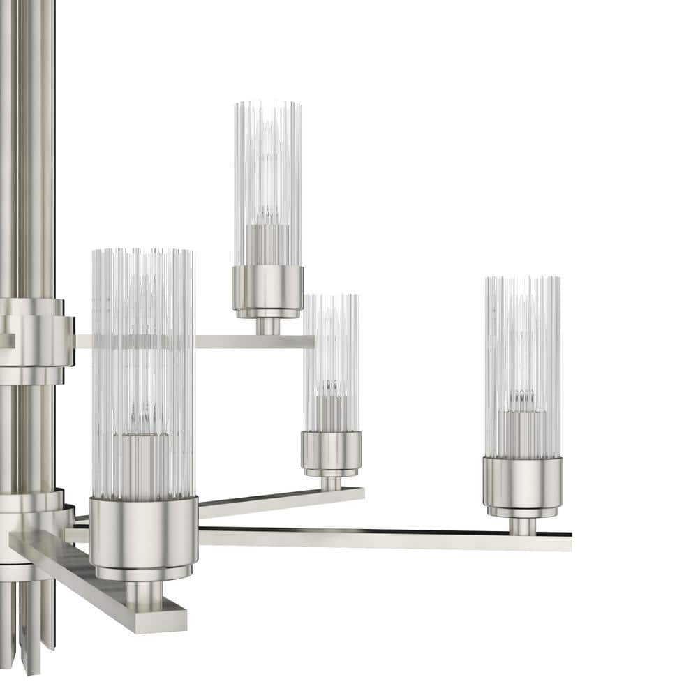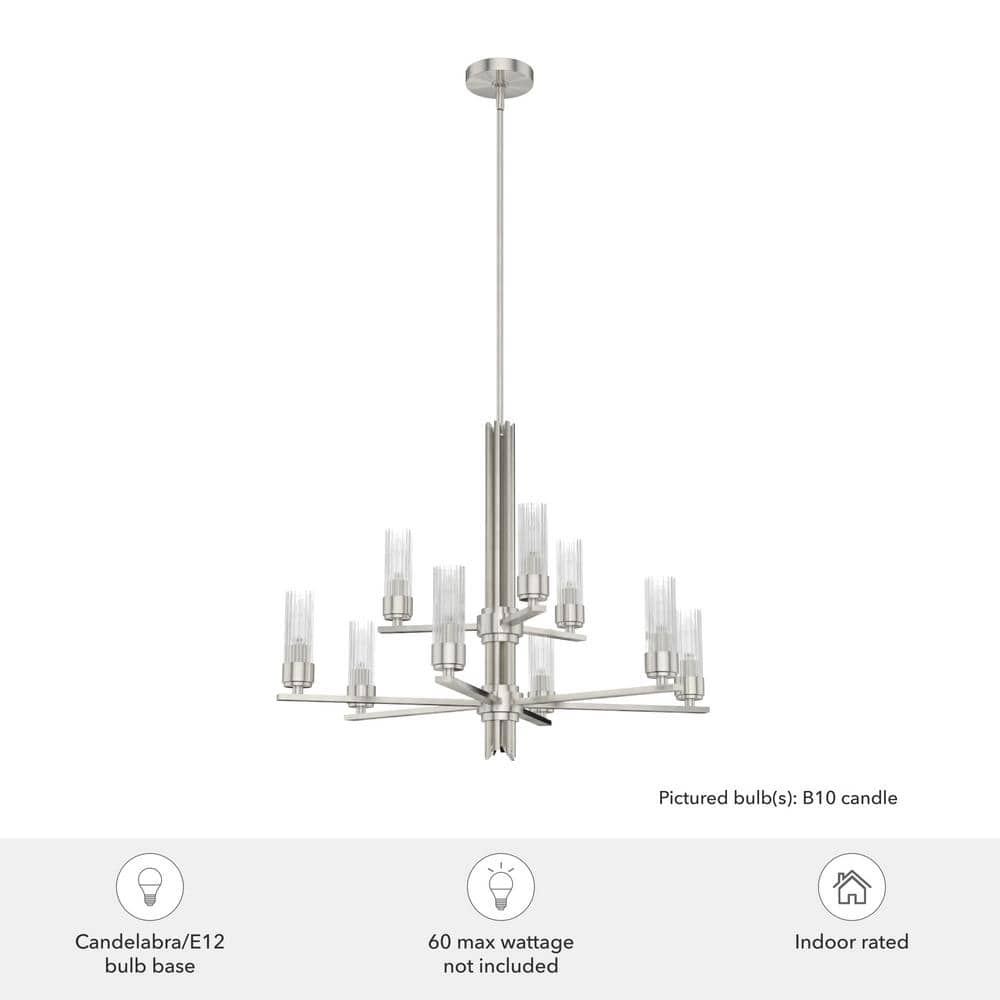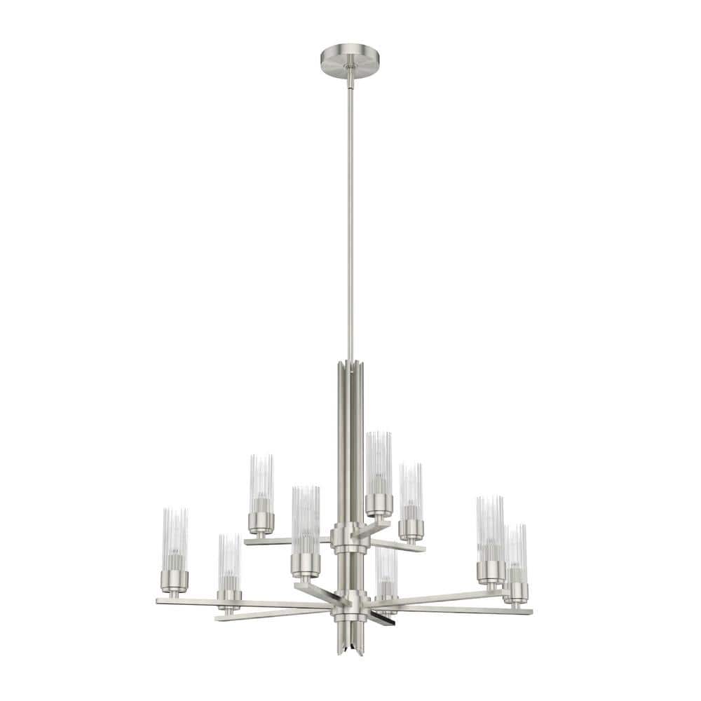 Hunter Gatz 9-Light Brushed Nickel Candlestick Chandelier with Ribbed Glass Shades