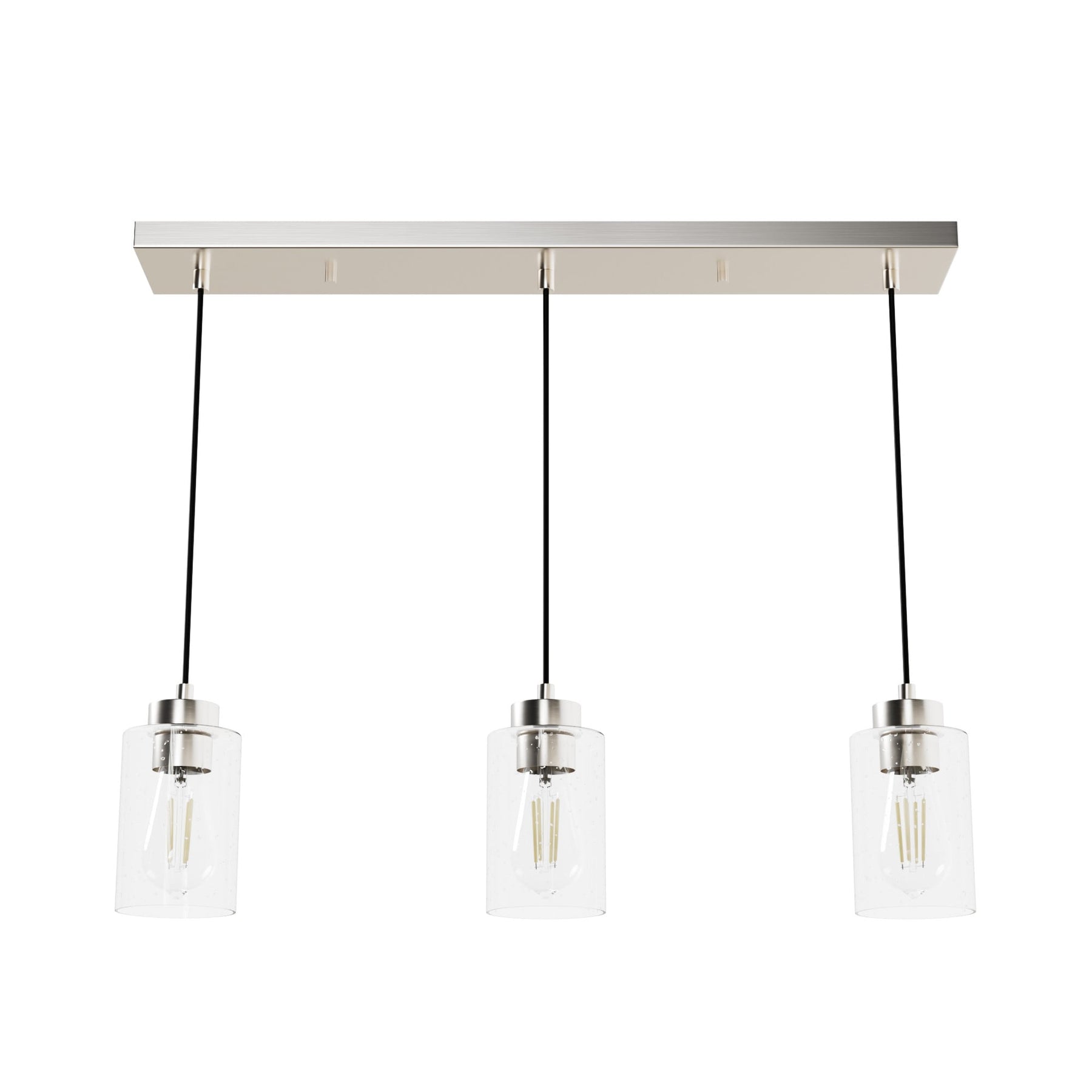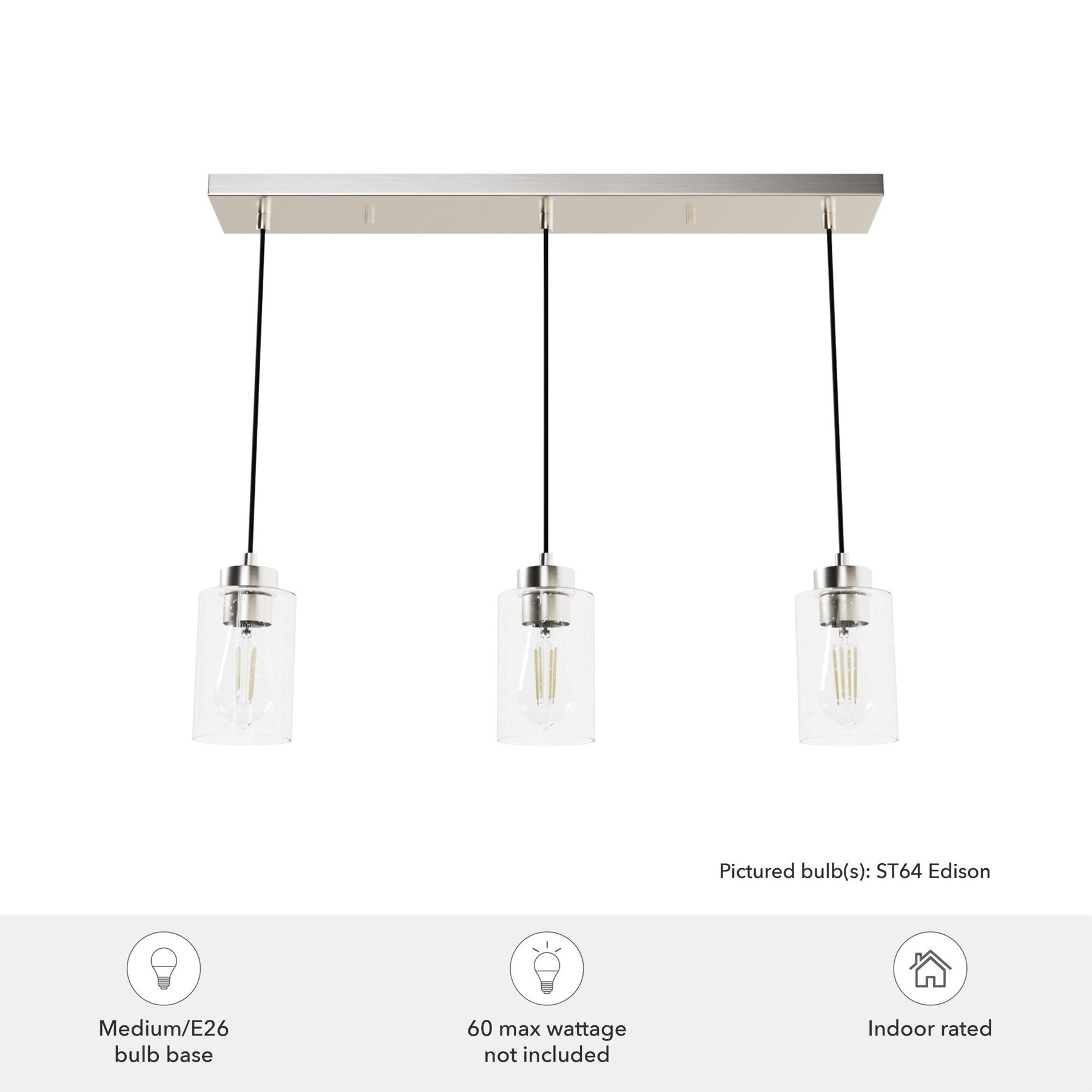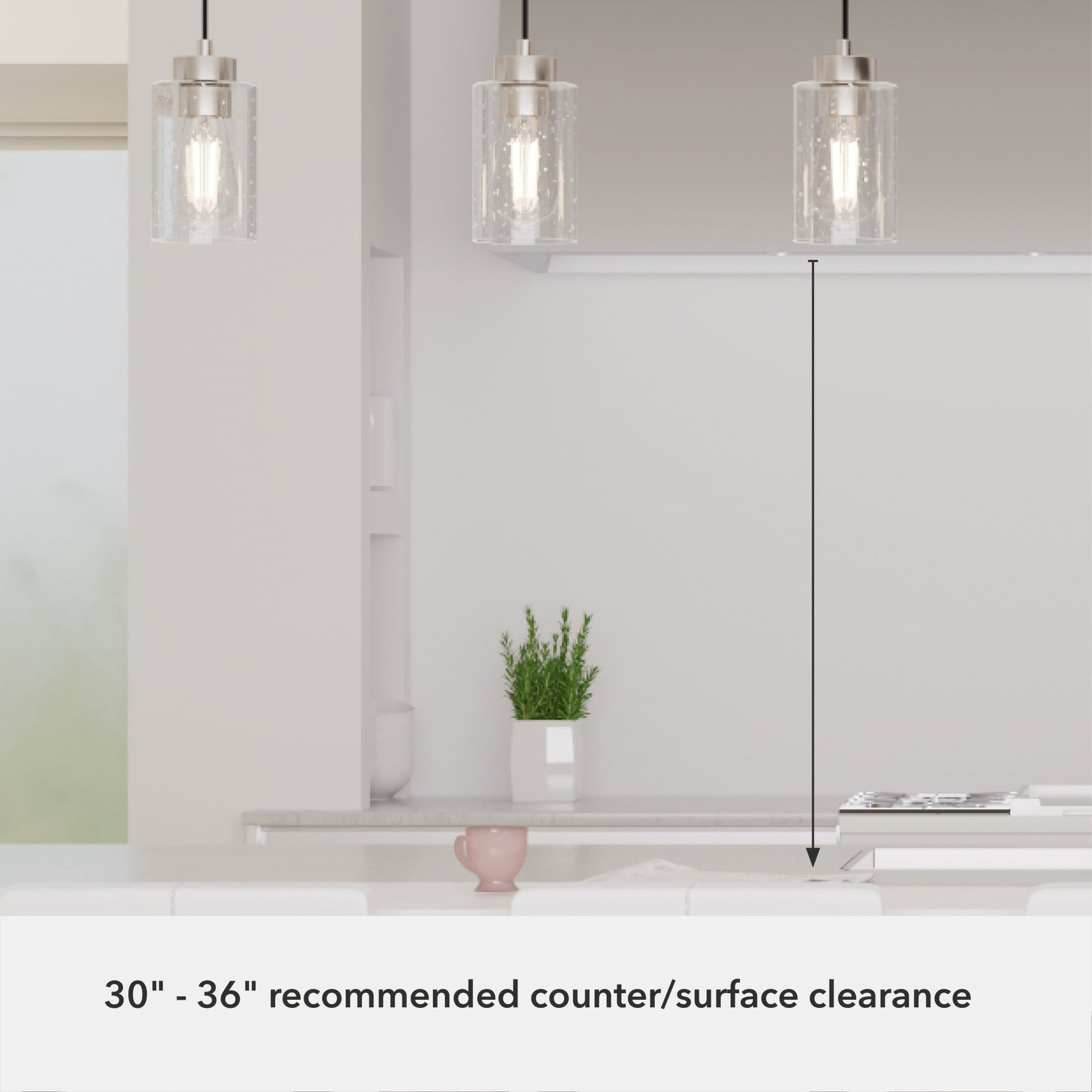 • Premium Design: Brushed nickel finish with clear-seeded glass adds elegance and warmth to any setting.