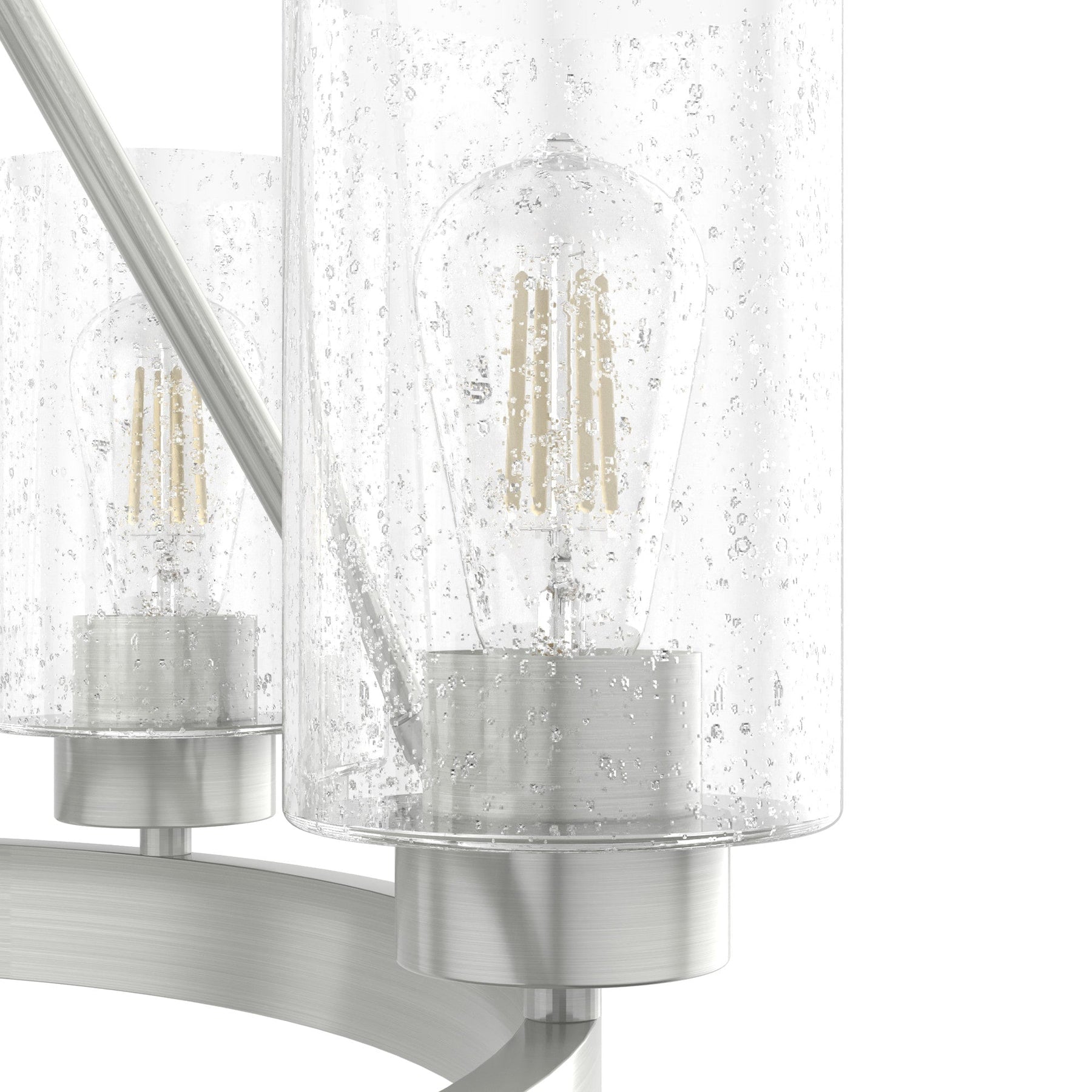 Premium Finish: Brushed nickel finish with attractive seeded glass shading.