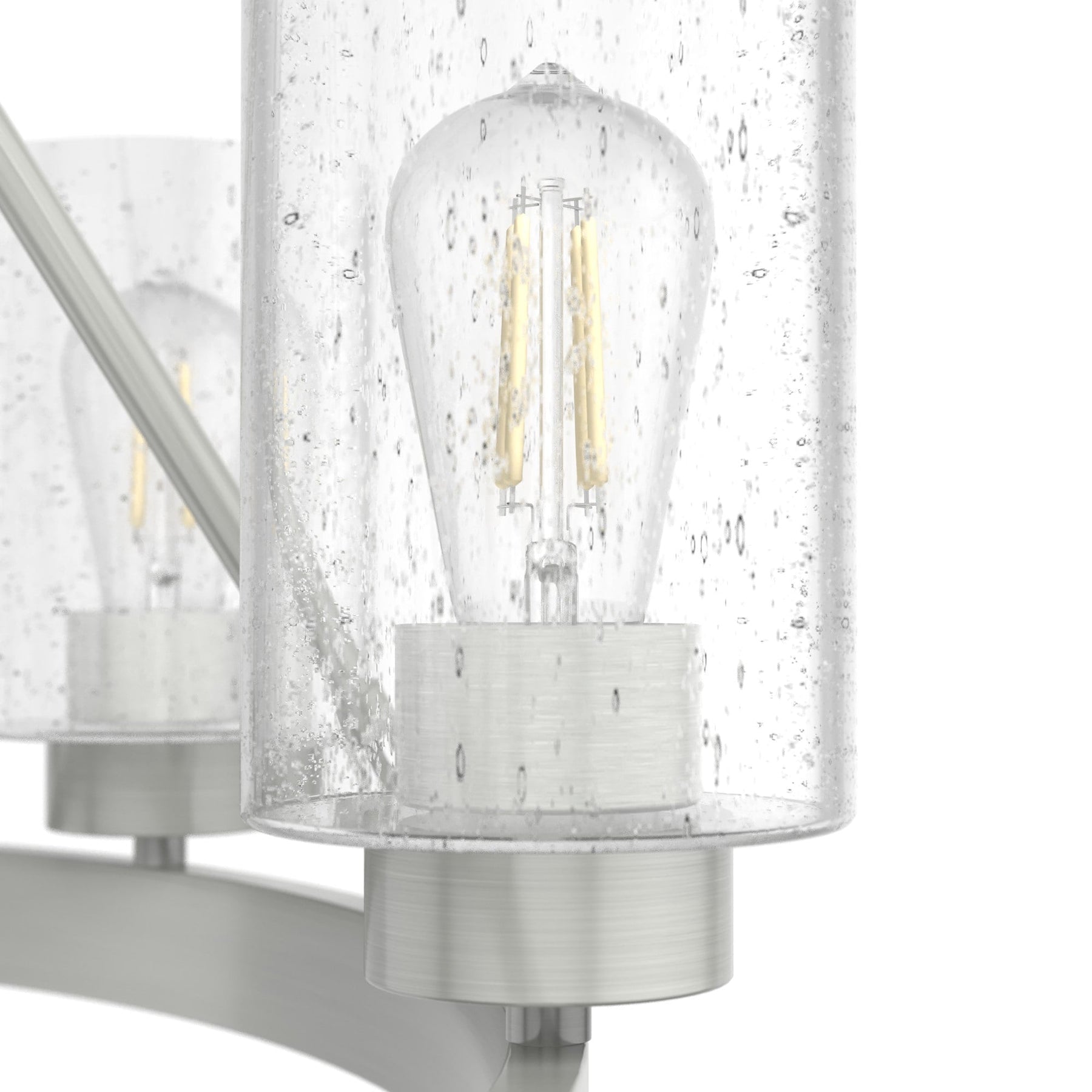 Premium Materials: Constructed from formed steel and aluminum for enhanced durability, adorned with a brushed nickel finish and clear seeded glass shades.