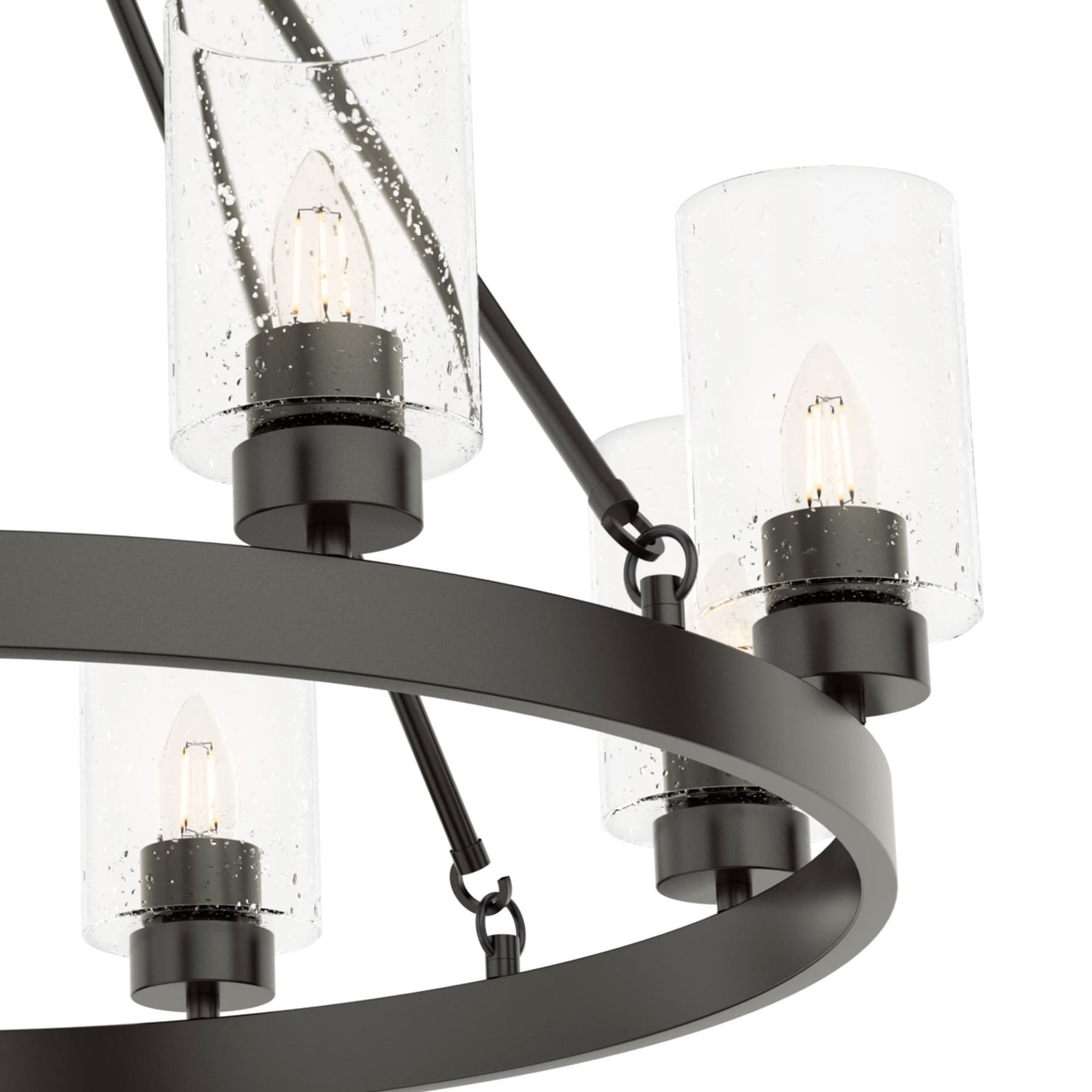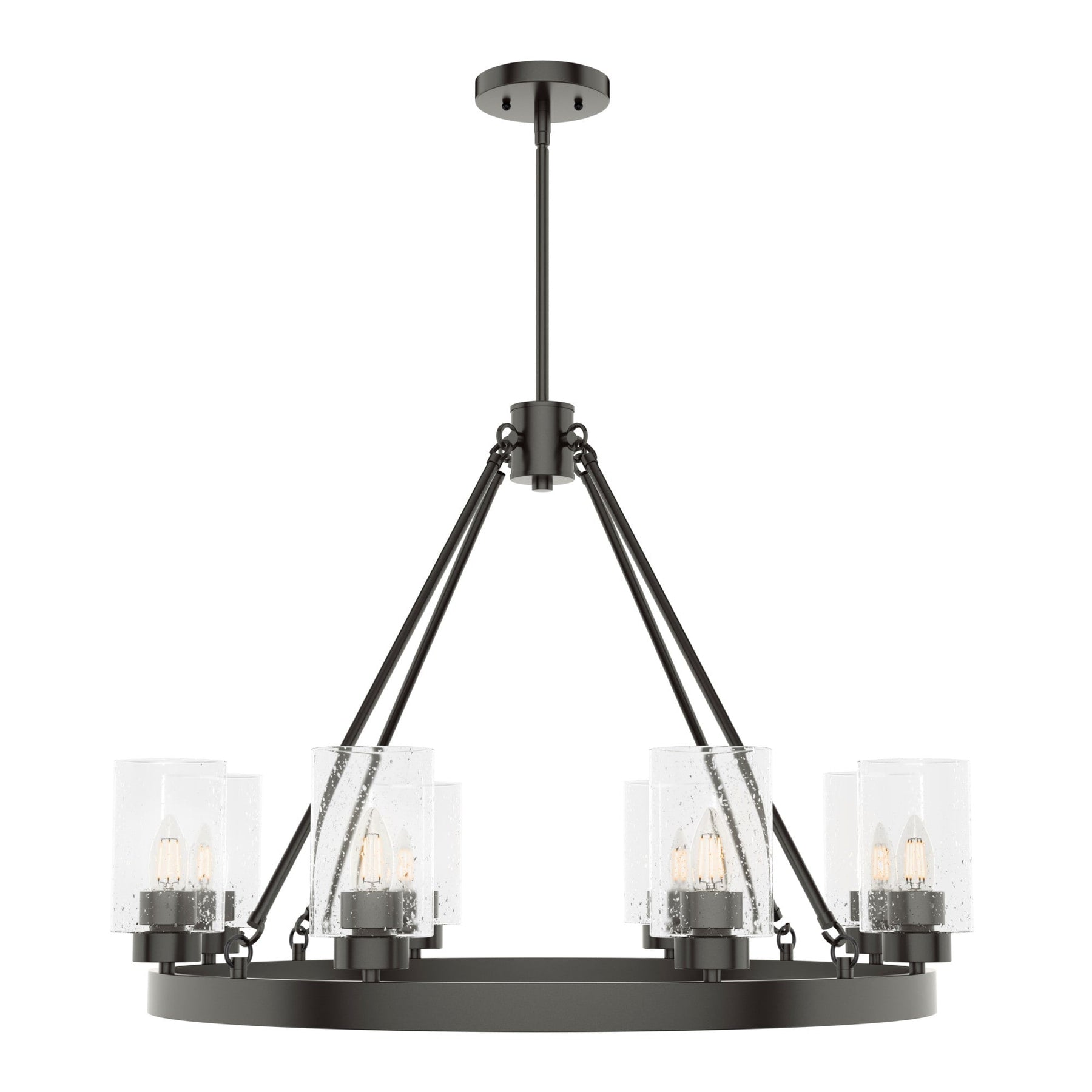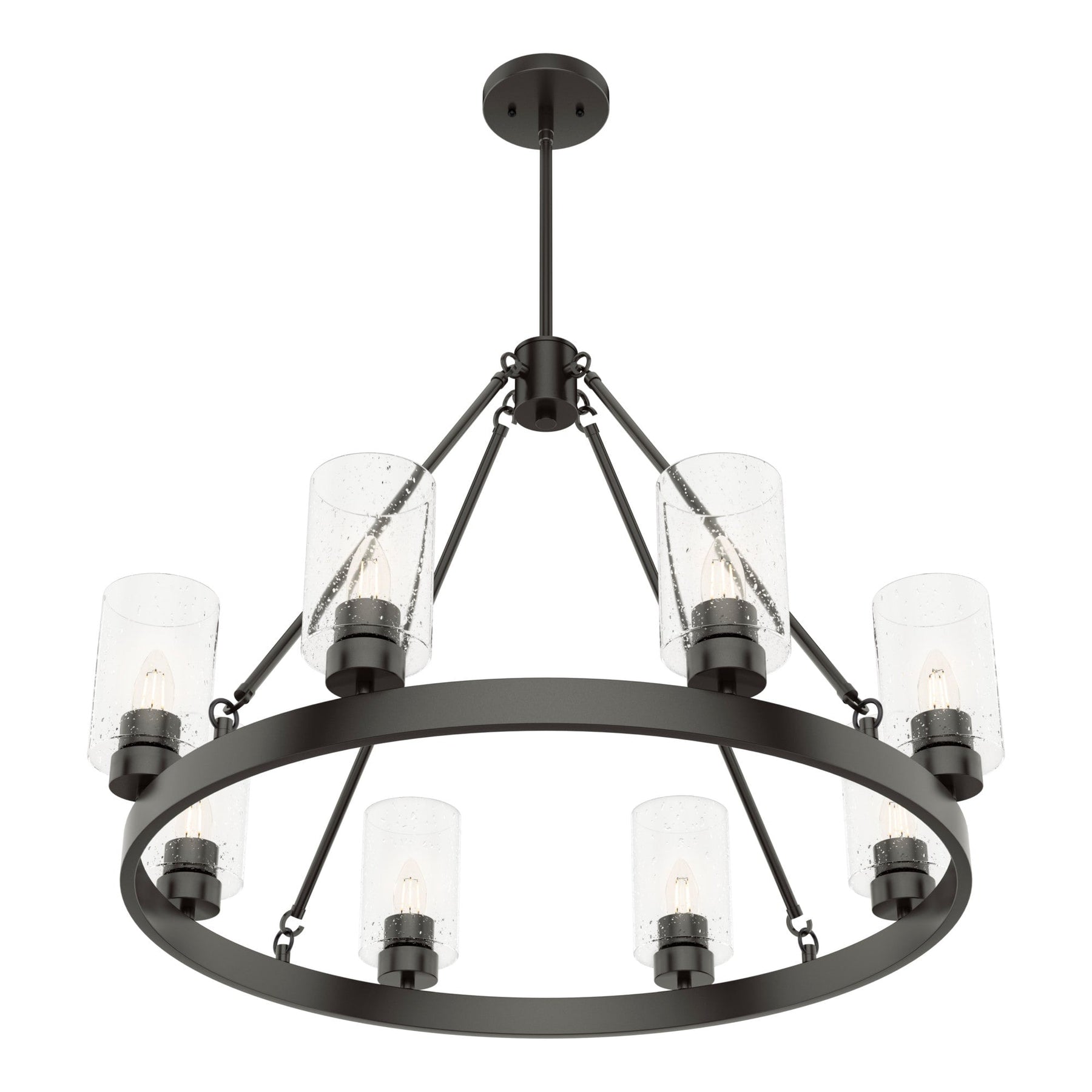 Illuminate your space with the Hunter Hartland 8-Light Matte Bronze Chandelier, a beautifully crafted lighting fixture that encapsulates farmhouse charm with its noble bronze finish and clear seeded glass shades. Ideal for kitchens, dining rooms, and living areas, this chandelier offers adjustable hanging lengths to fit seamlessly into any space.