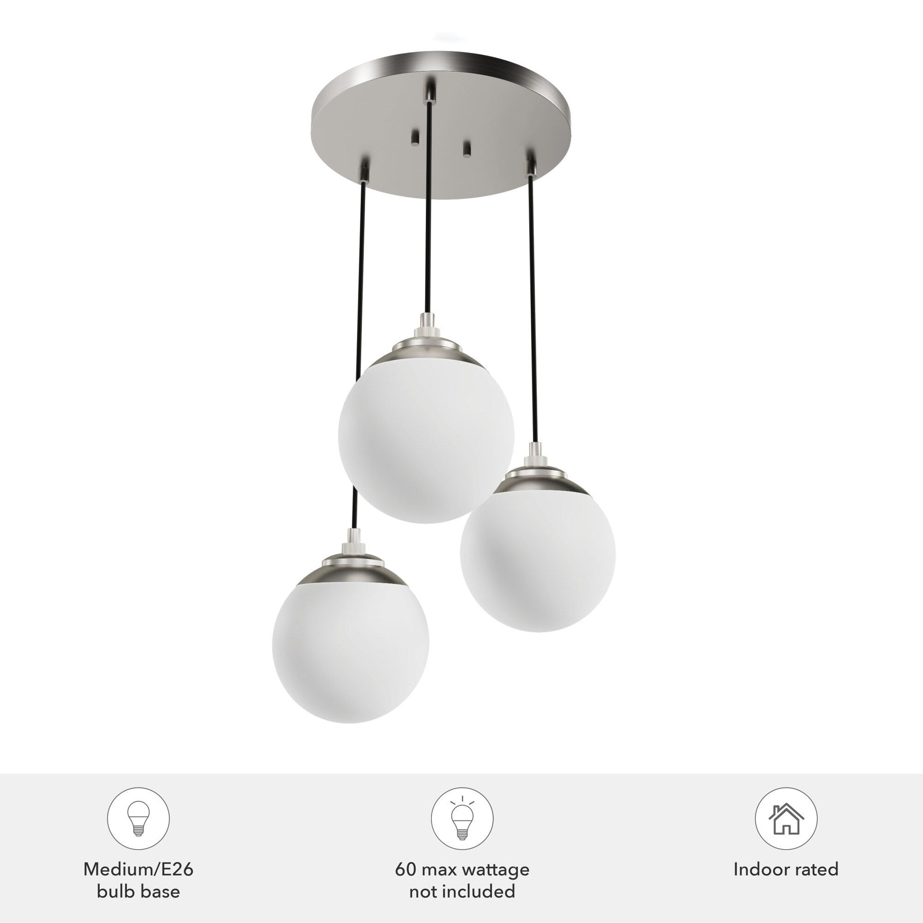 Elevate your space with the Hunter Hepburn 3-Light Pendant, blending mid-century design with modern functionality. With its brushed nickel finish and cased white glass shades, this fixture provides a sophisticated touch, perfect for illuminating any living area. Minimal assembly and adjustable hanging make it a prime choice for both professionals and DIY enthusiasts.