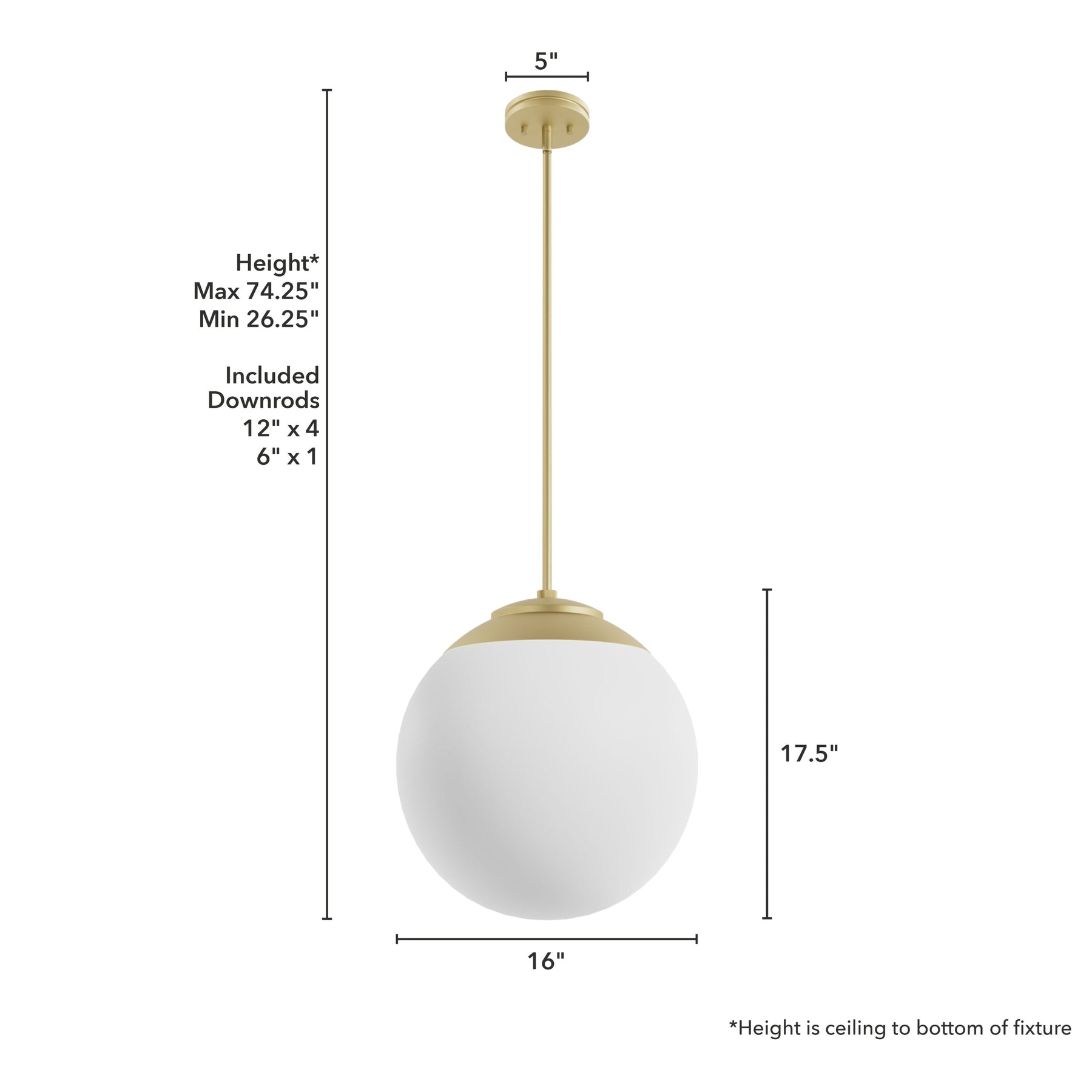 Hunter Hepburn 3-Light Painted Modern Brass Mid-century White Glass Globe LED Medium Hanging Pendant Light