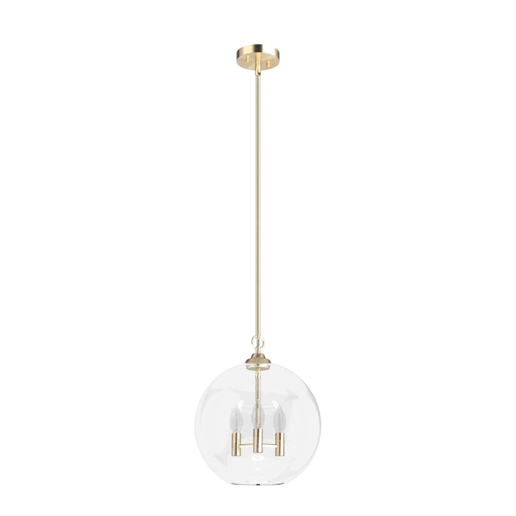 Imagine bathing your space in the soft, incandescent glow of the High Oaks pendant, where three delicate globes resemble lanterns from a bygone era. The palm gold finish exudes subtle luxury, enveloping you in warmth. Picture it gracing your dining area or kitchen island, transforming everyday moments into splendid occasions. The seeded glass offers playful textures of light and shadow, making this piece an absolute essential in that quintessentially luxurious home ambiance.