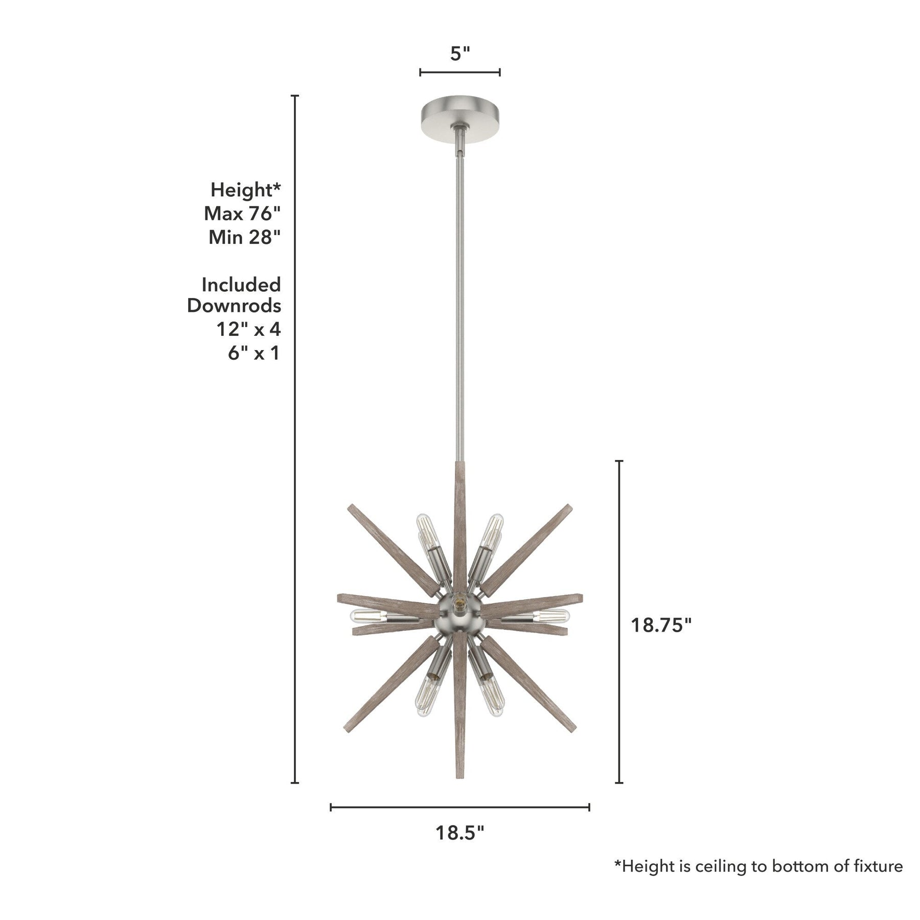 Flexible Hanging: Includes multiple downrods for adjustable hanging lengths from 28" to 76".