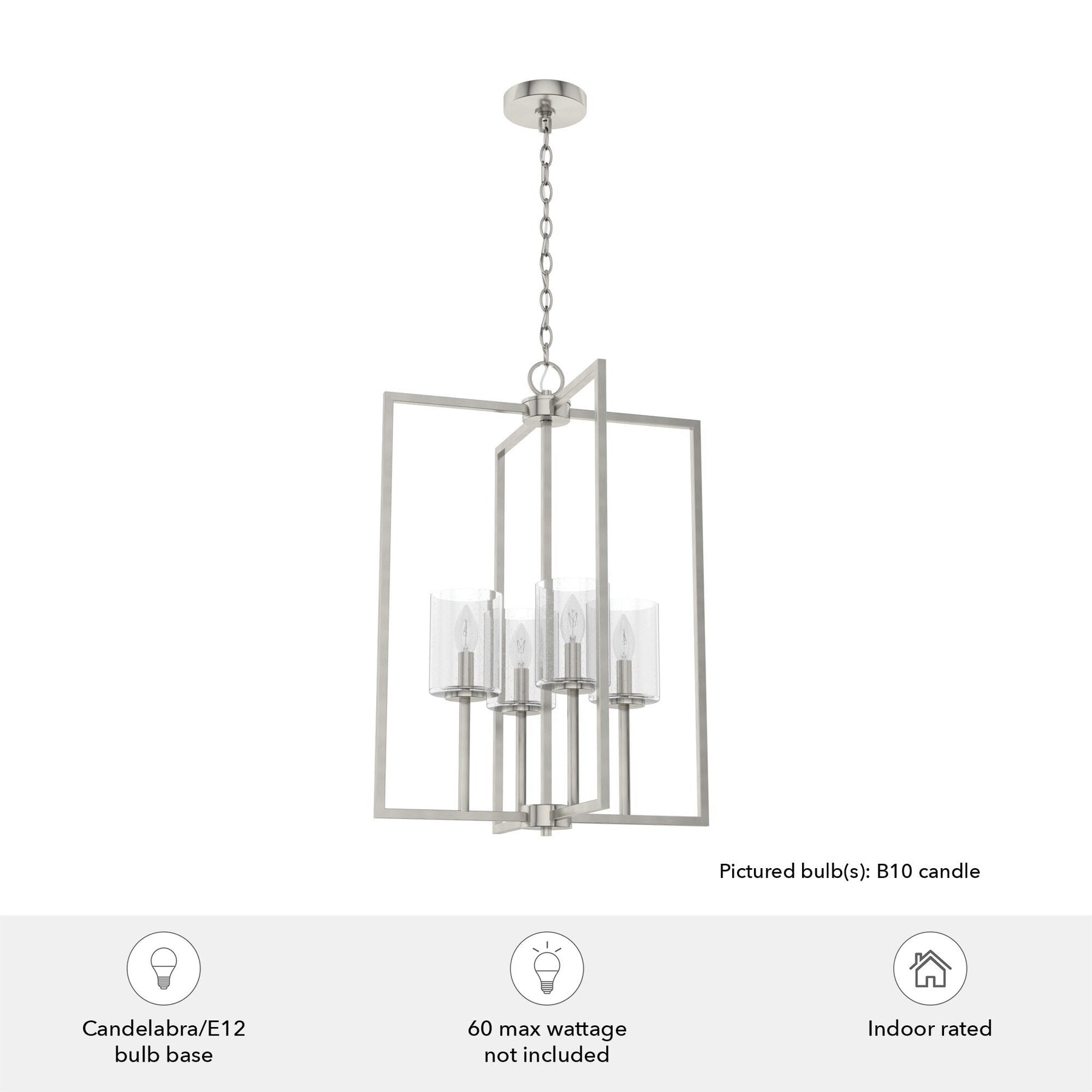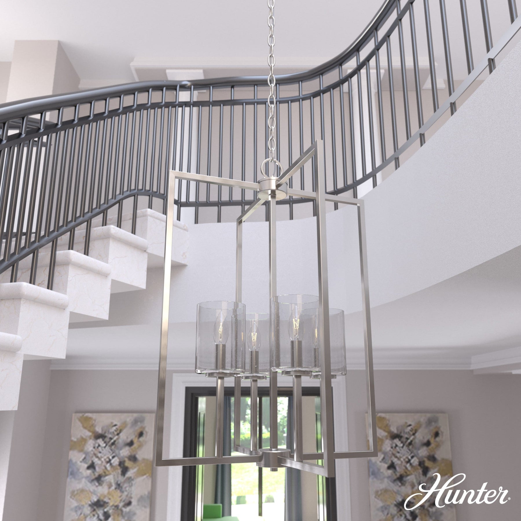 Illuminate your kitchen or dining area with the Hunter Kerrison 4-Light LED Pendant. Featuring a brushed nickel finish and elegant seeded glass, this fixture casts a stunning glow that embodies modern sophistication. Designed for easy installation, it's perfect for professional contractors and savvy DIY enthusiasts alike.