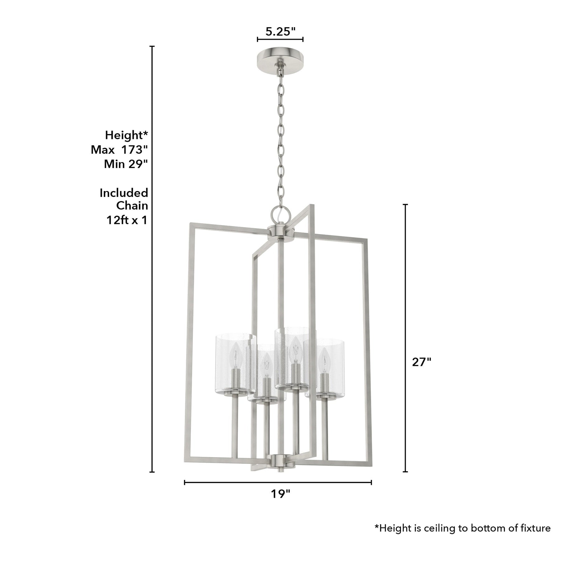 Premium Design: Brushed nickel finish with seeded glass shading enhances any modern or contemporary space.