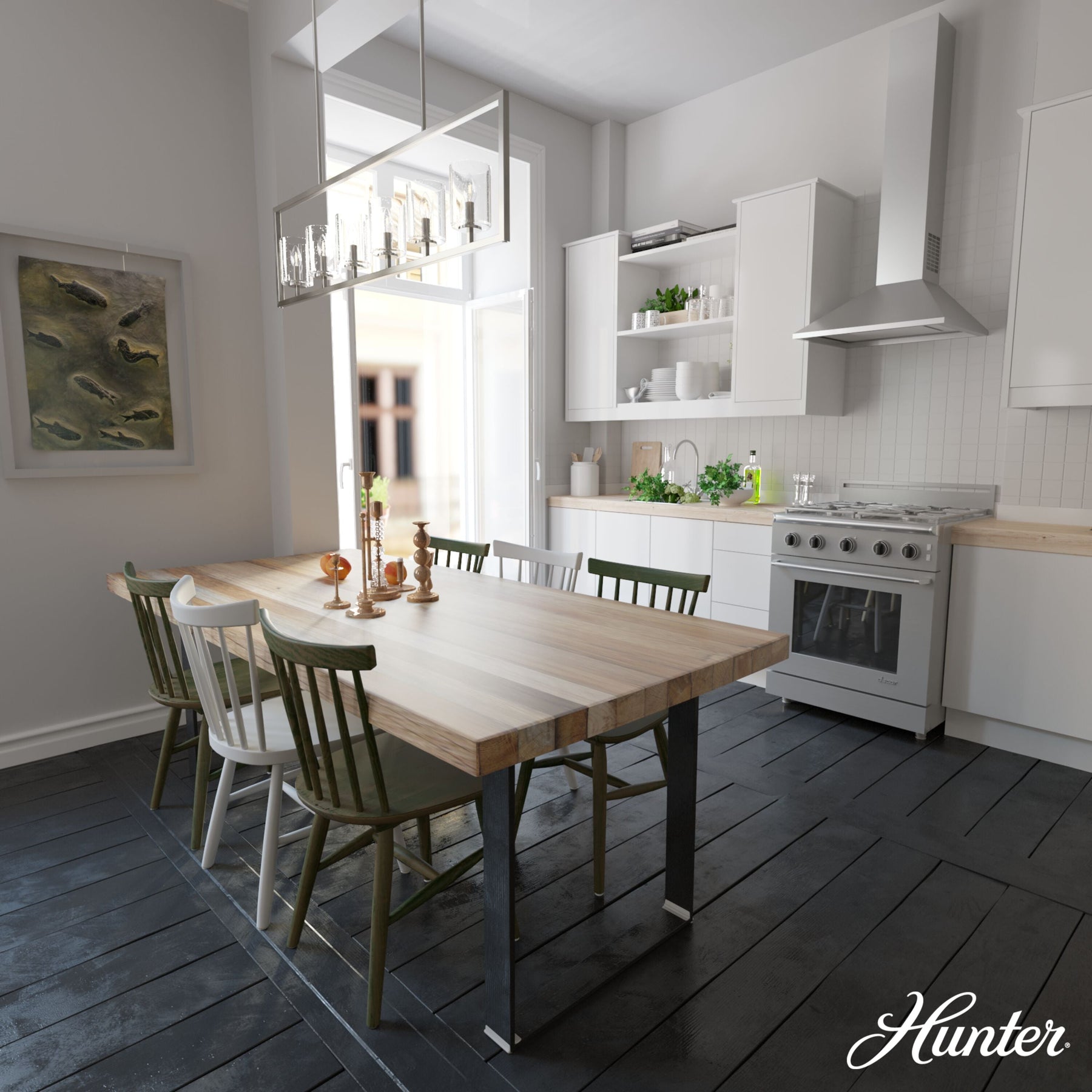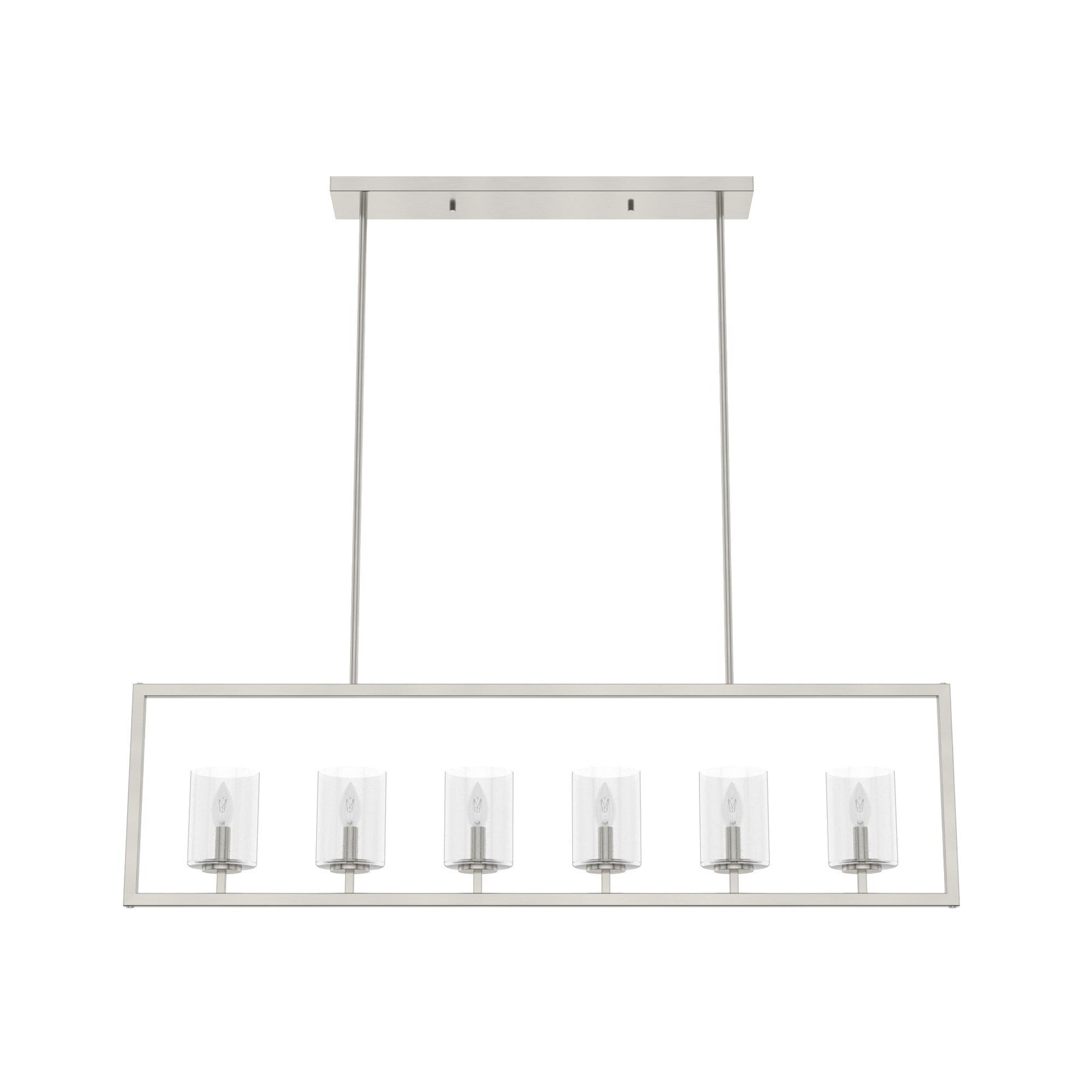 The Hunter Kerrison 6-Light Chandelier combines modern elegance with timeless design, offering an eye-catching addition to any home setting. Its brushed nickel finish and premium seeded glass shades create a sophisticated ambience, perfect for kitchens, dining rooms, or living spaces. Crafted with high-quality materials, this chandelier ensures durability and style that will illuminate your home for years to come.