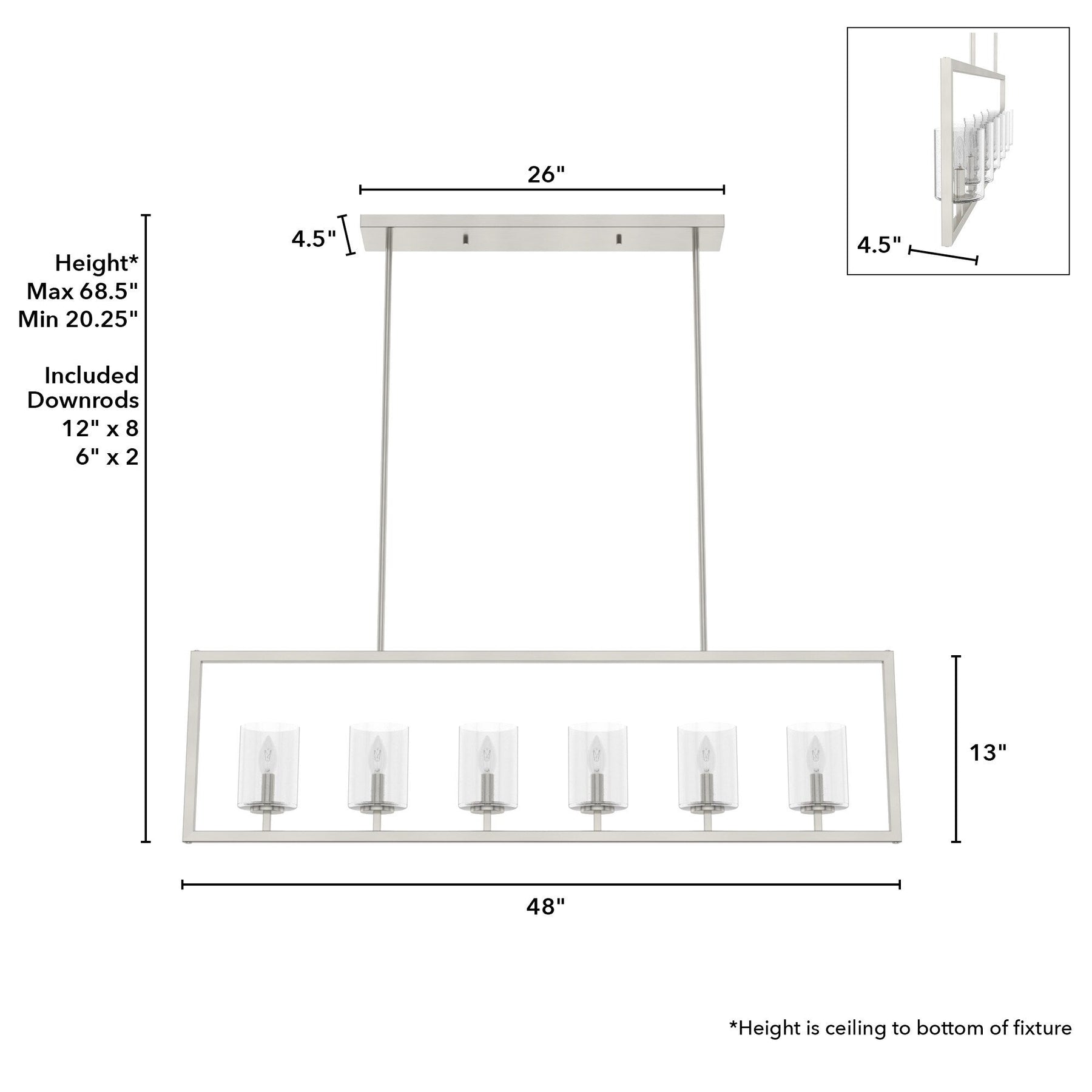 • Adjustable Installation: Includes a flexible hanging system with multiple downrods for customizable heights, ranging from 20.25 inches to 68.5 inches.