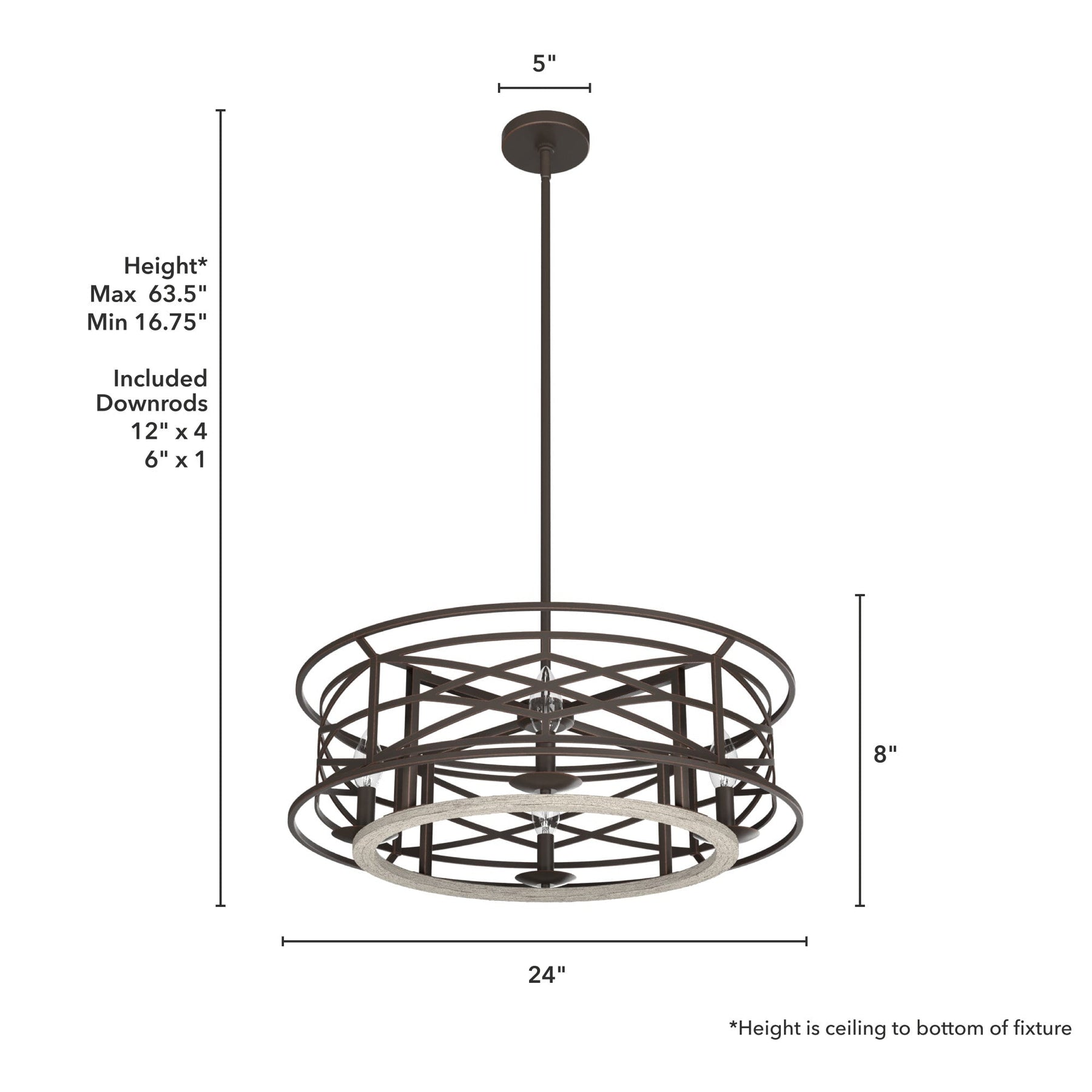 - Flexible Hanging: Includes 6-inch and four 12-inch downrods for adjustable hanging heights from 16.75 to 63.5 inches.