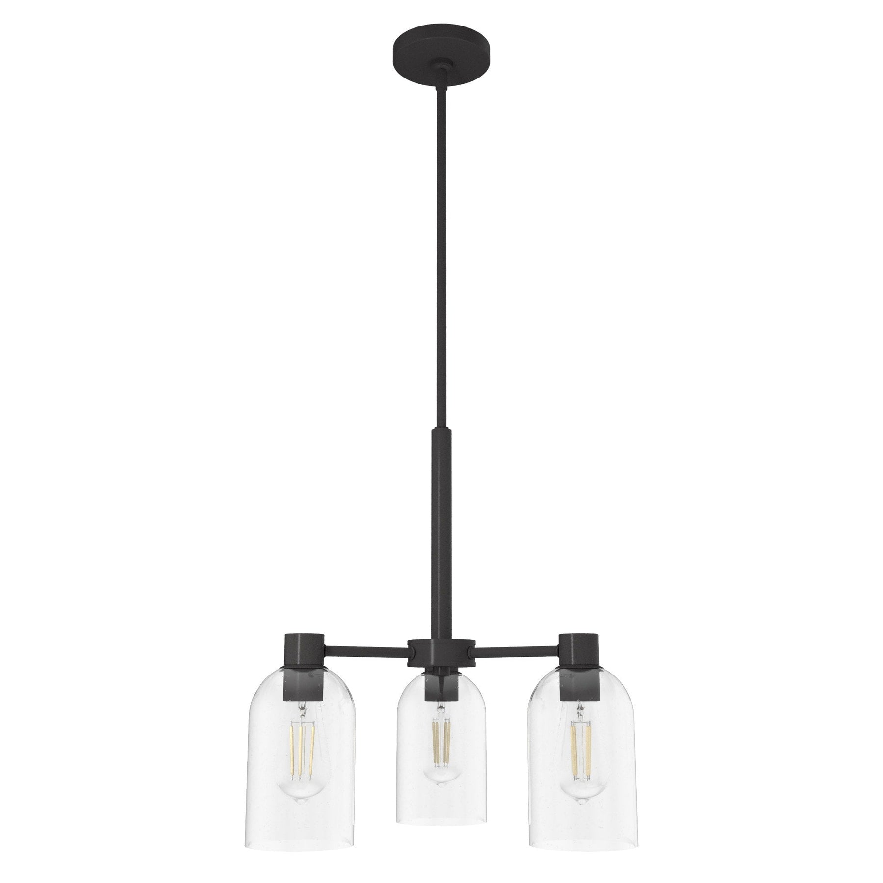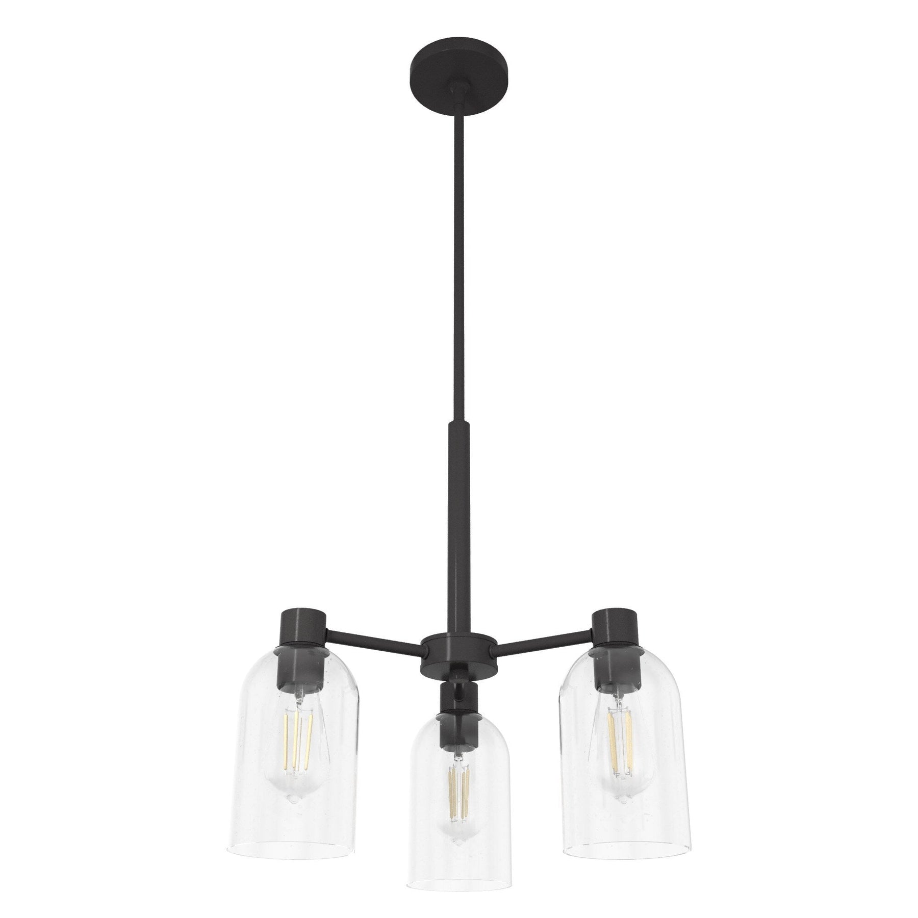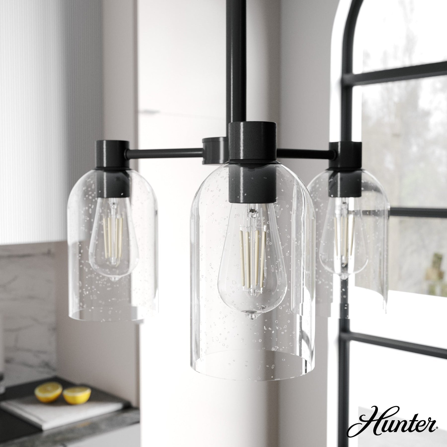Illuminate your space in chic modern style with the Hunter Lochemeade 3-Light Chandelier. With its elegant matte bronze finish and premium clear seeded glass shades, this chandelier provides a sophisticated touch to any room. Ideal for kitchens, dining rooms, or living areas, it perfectly balances form and function.