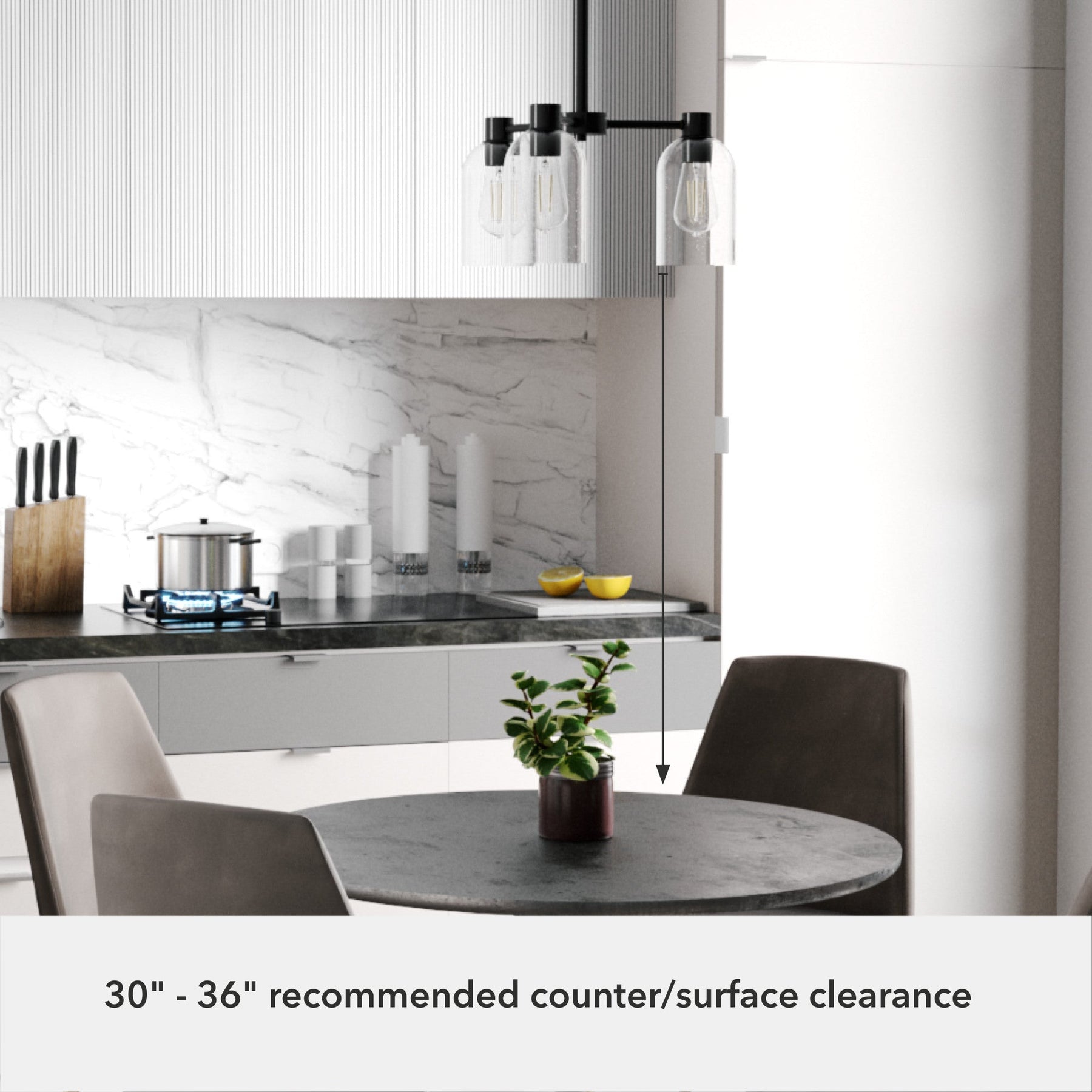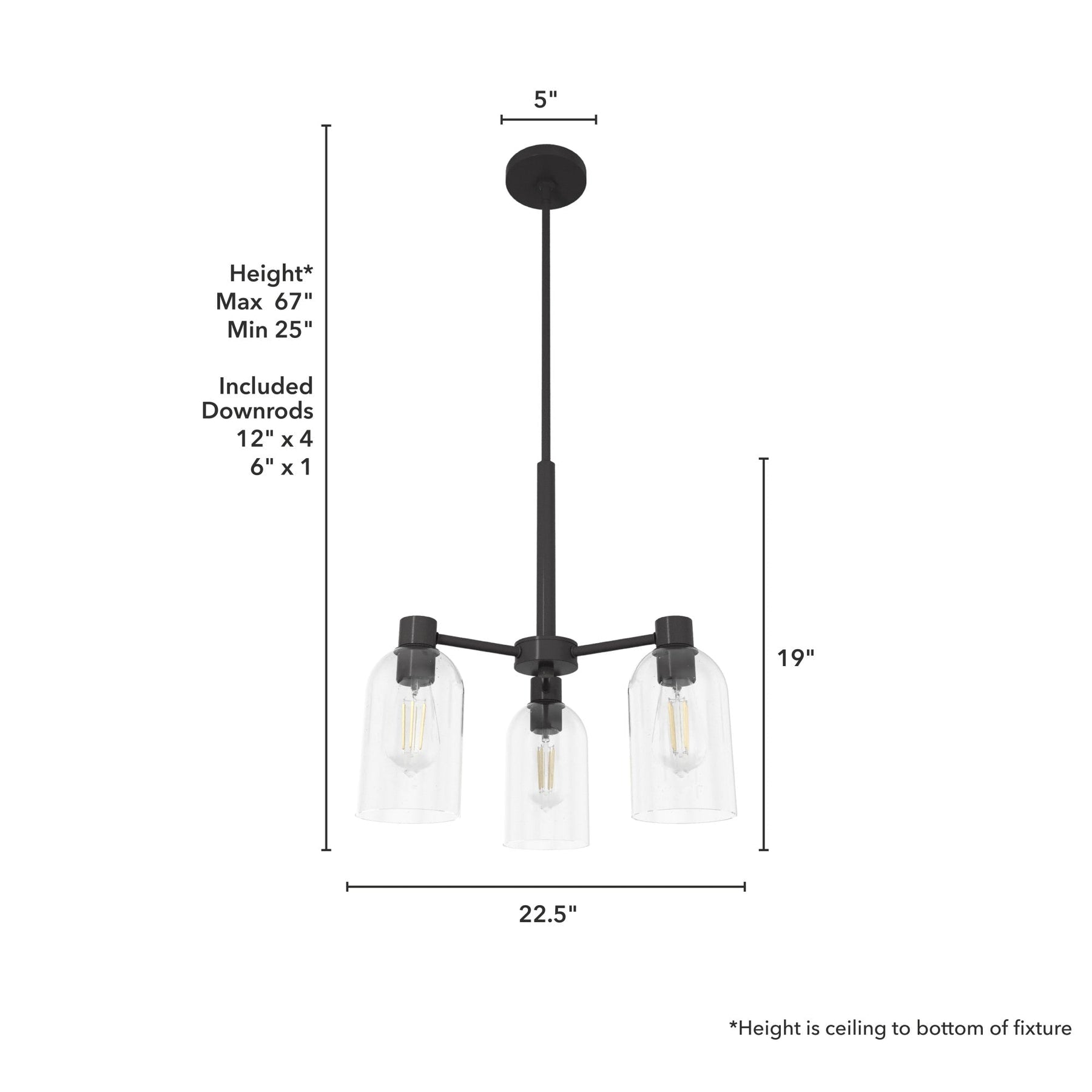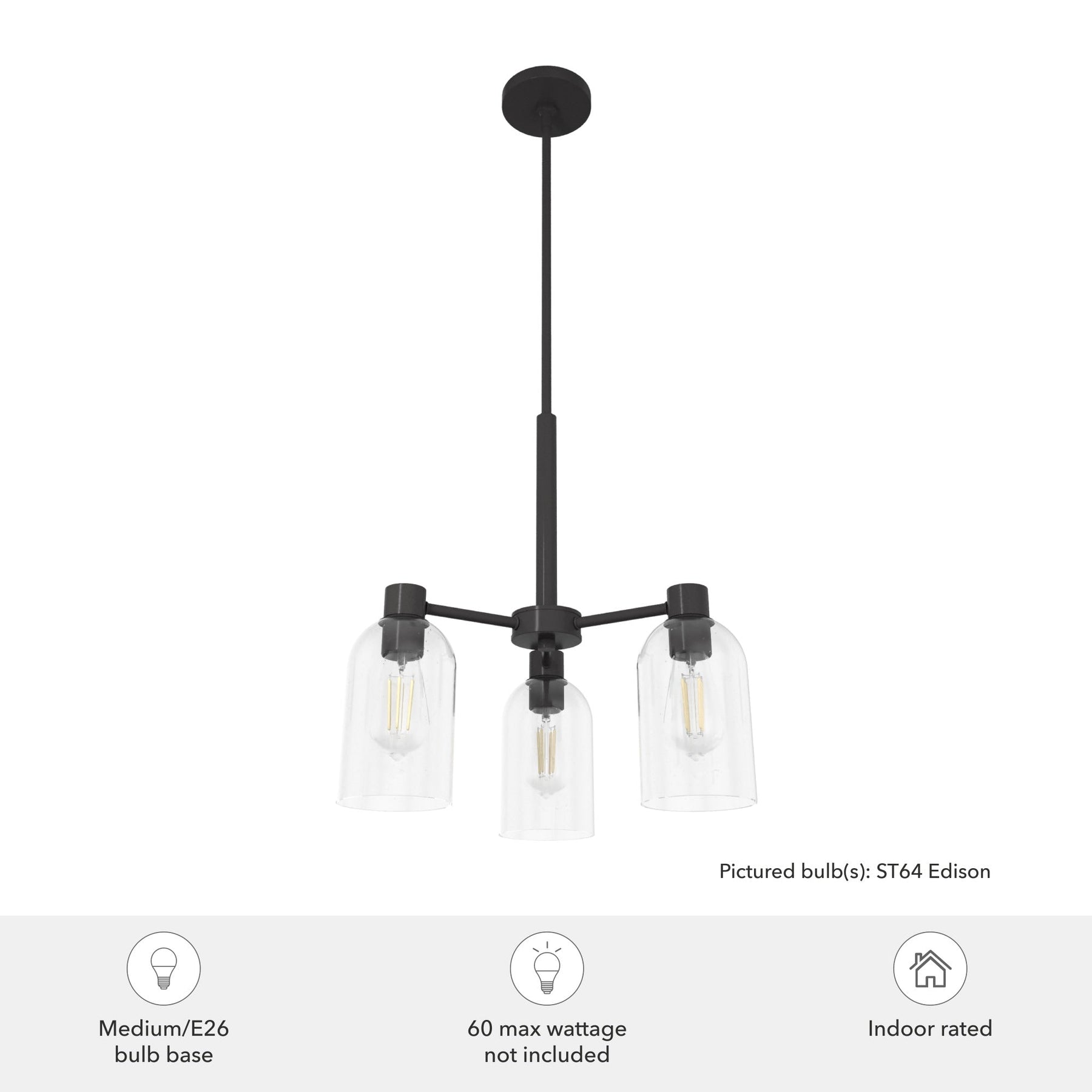 Illuminate your space in chic modern style with the Hunter Lochemeade 3-Light Chandelier. With its elegant matte bronze finish and premium clear seeded glass shades, this chandelier provides a sophisticated touch to any room. Ideal for kitchens, dining rooms, or living areas, it perfectly balances form and function.