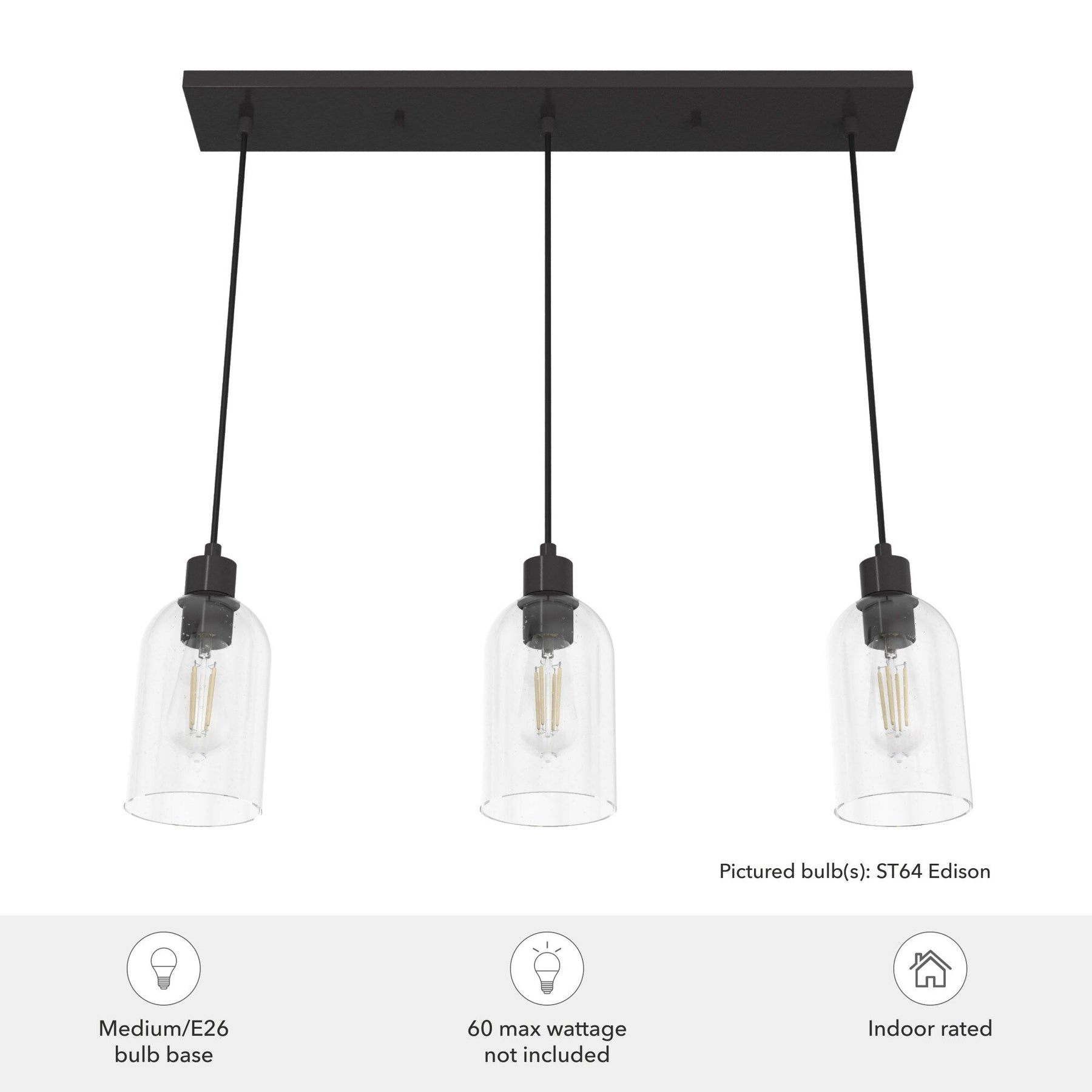 Illuminate your kitchen or living space with the Hunter Lochemeade 3-Light LED Pendant. This sophisticated fixture features clear seeded glass and a noble bronze finish, offering a modern touch that transforms your home into a stylish haven. Designed with flexibility in mind, it adapts to various ceiling heights and styles, providing high-quality lighting with a chic minimalist aesthetic.