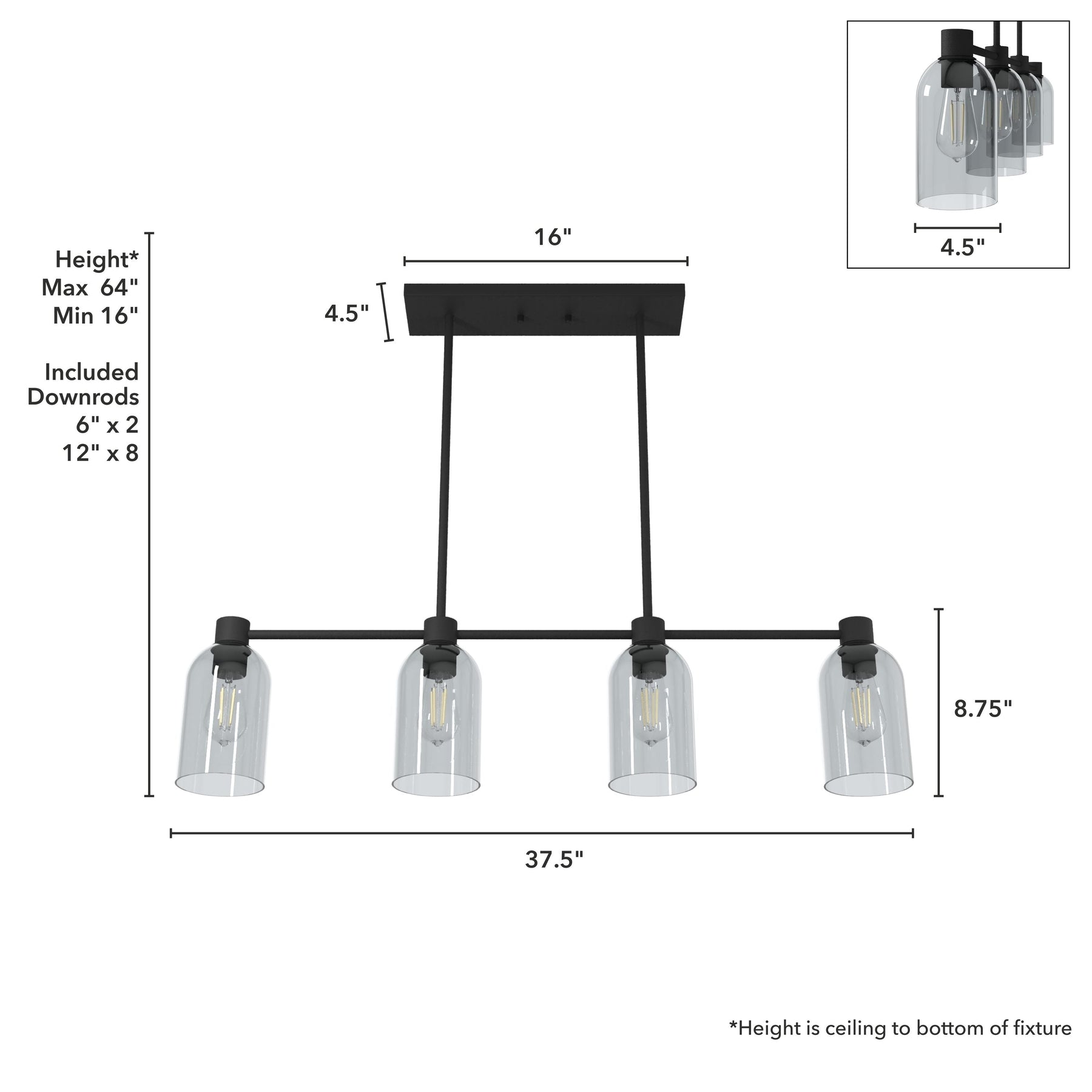 Illuminate your space with the Hunter Lochemeade 4-Light Chandelier, featuring a striking matte black finish and avant-garde LED crystal design. This modern fixture adds a touch of elegance and sophistication to any room, perfect for dining rooms, kitchens, or foyers. With its durable steel construction and adjustable hanging length, it's as functional as it is stylish.