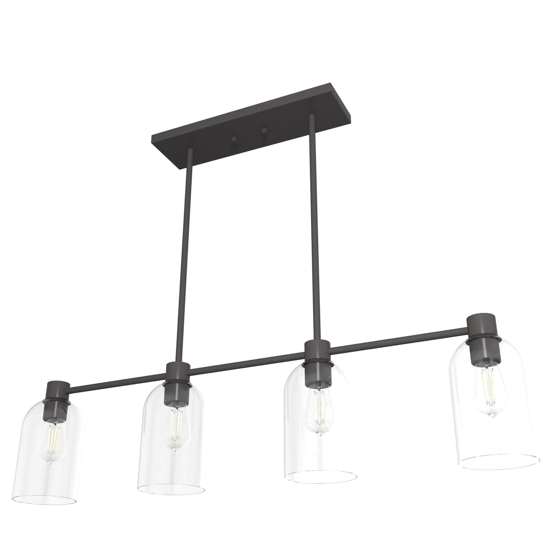 A: The Hunter Lochemeade chandelier requires four E26-base light bulbs, with a maximum of 60 watts each or the equivalent in LED.