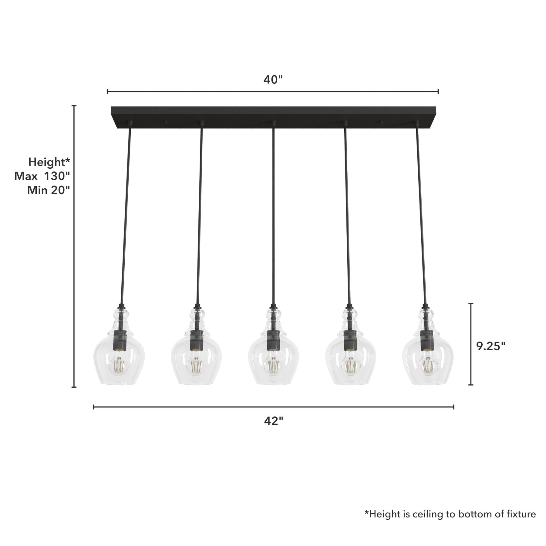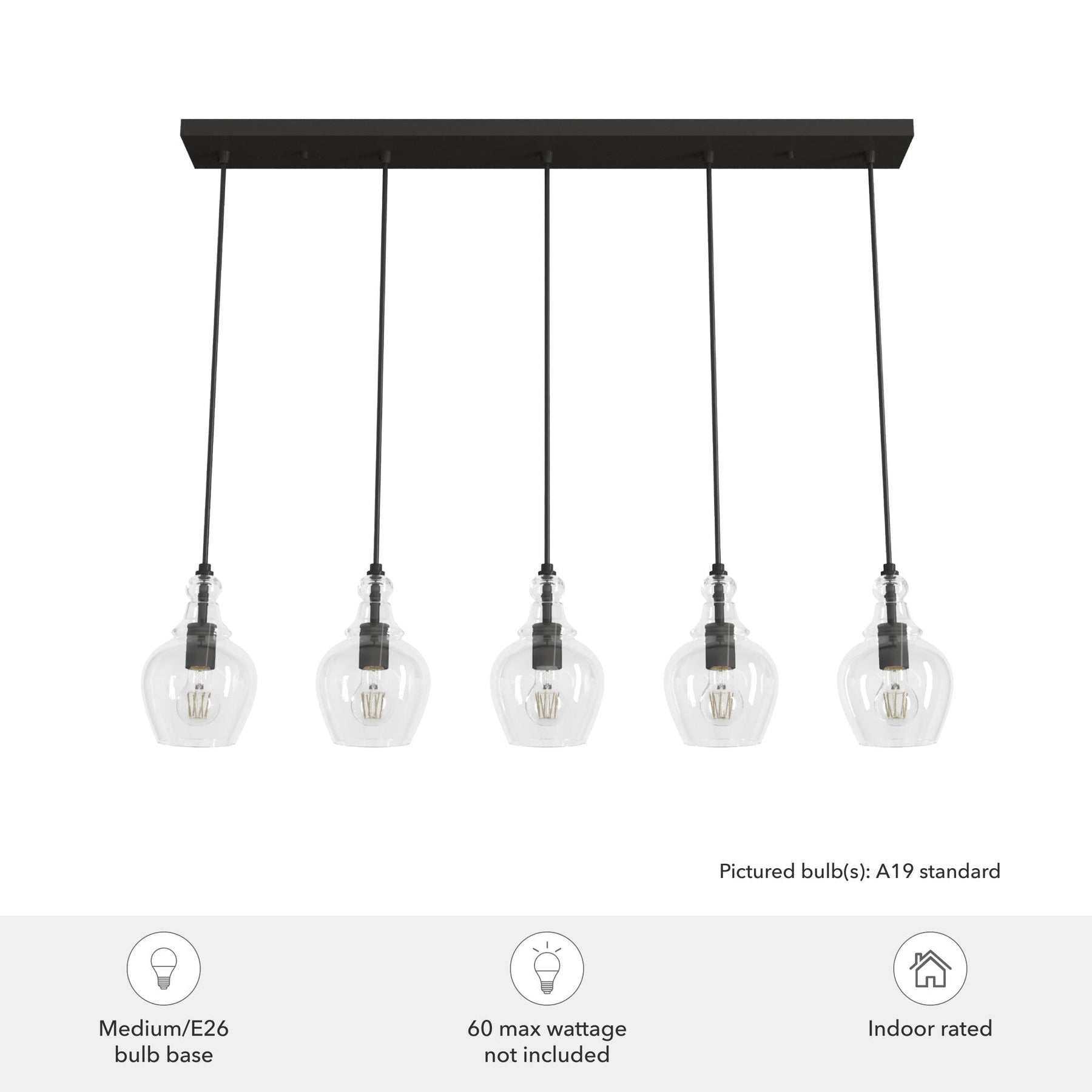 Elevate your interior spaces with the Hunter Maple Park 5-Light Noble Bronze Linear LED Fixture, a perfect blend of farmhouse charm and contemporary style. This statement piece features five clear glass teardrop lights set in an elegant line, ideal for enhancing kitchens, dining rooms, or living spaces.
