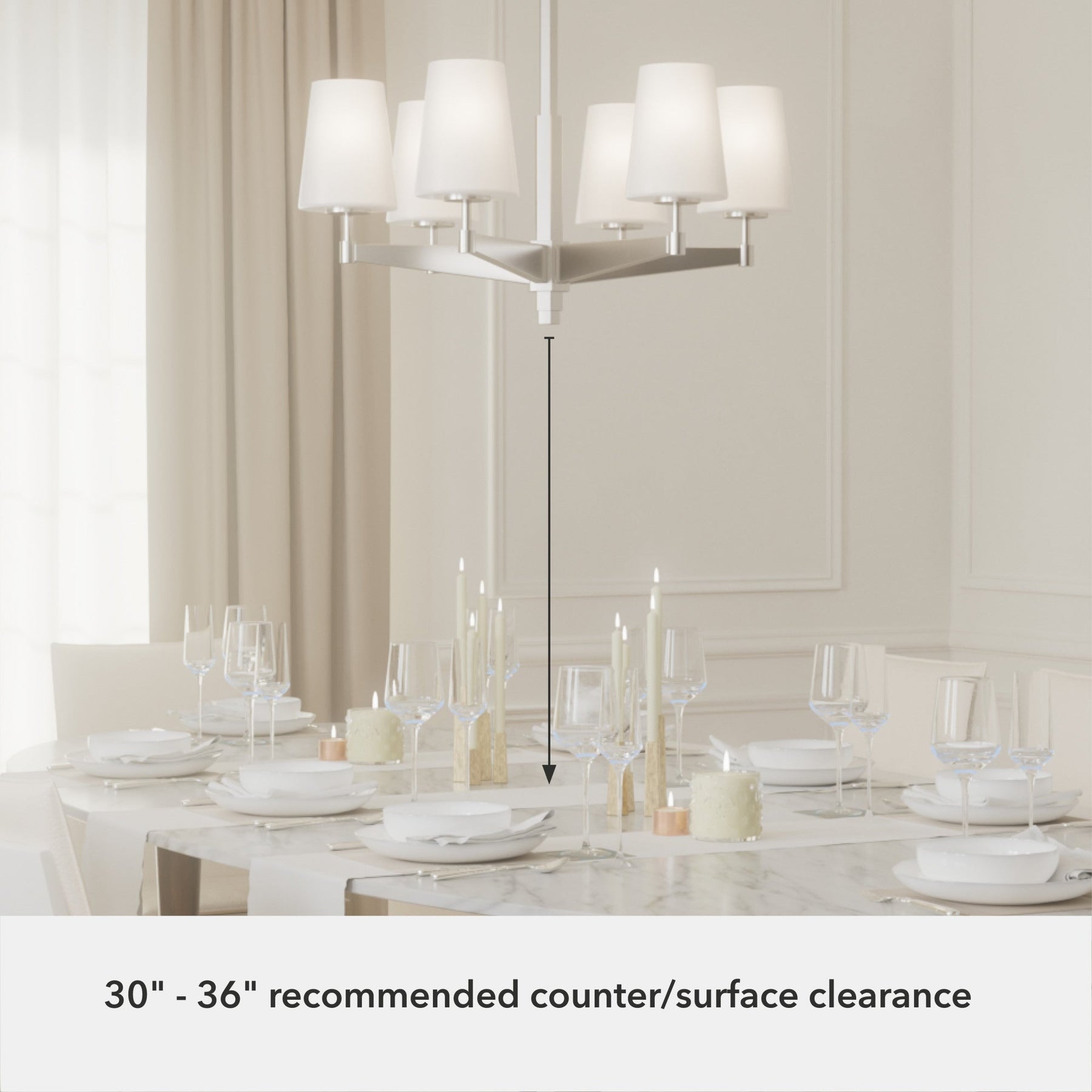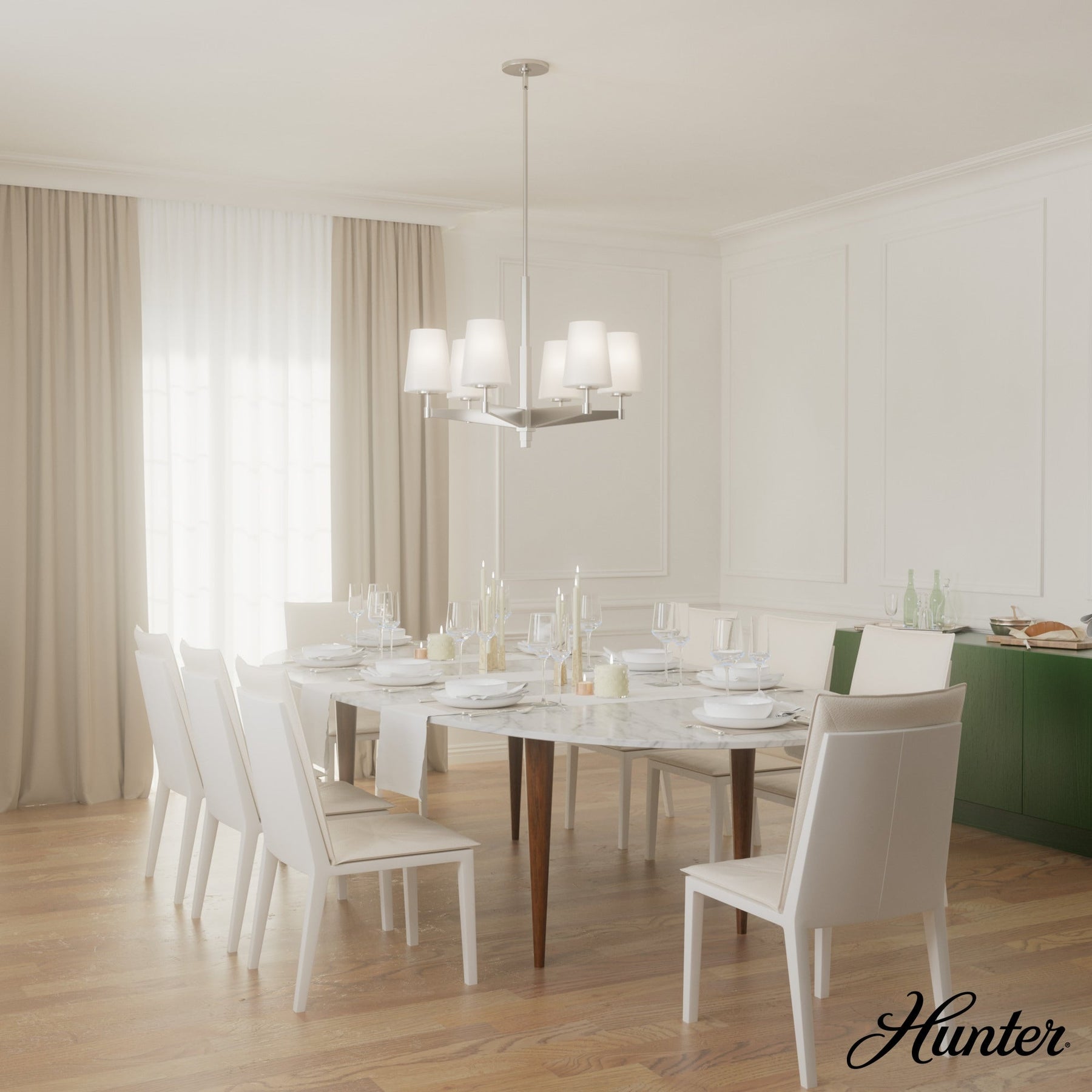 Elevate your home with the Hunter Nolita 6-Light Chandelier and experience how it transforms your space with its modern elegance and adaptable design.