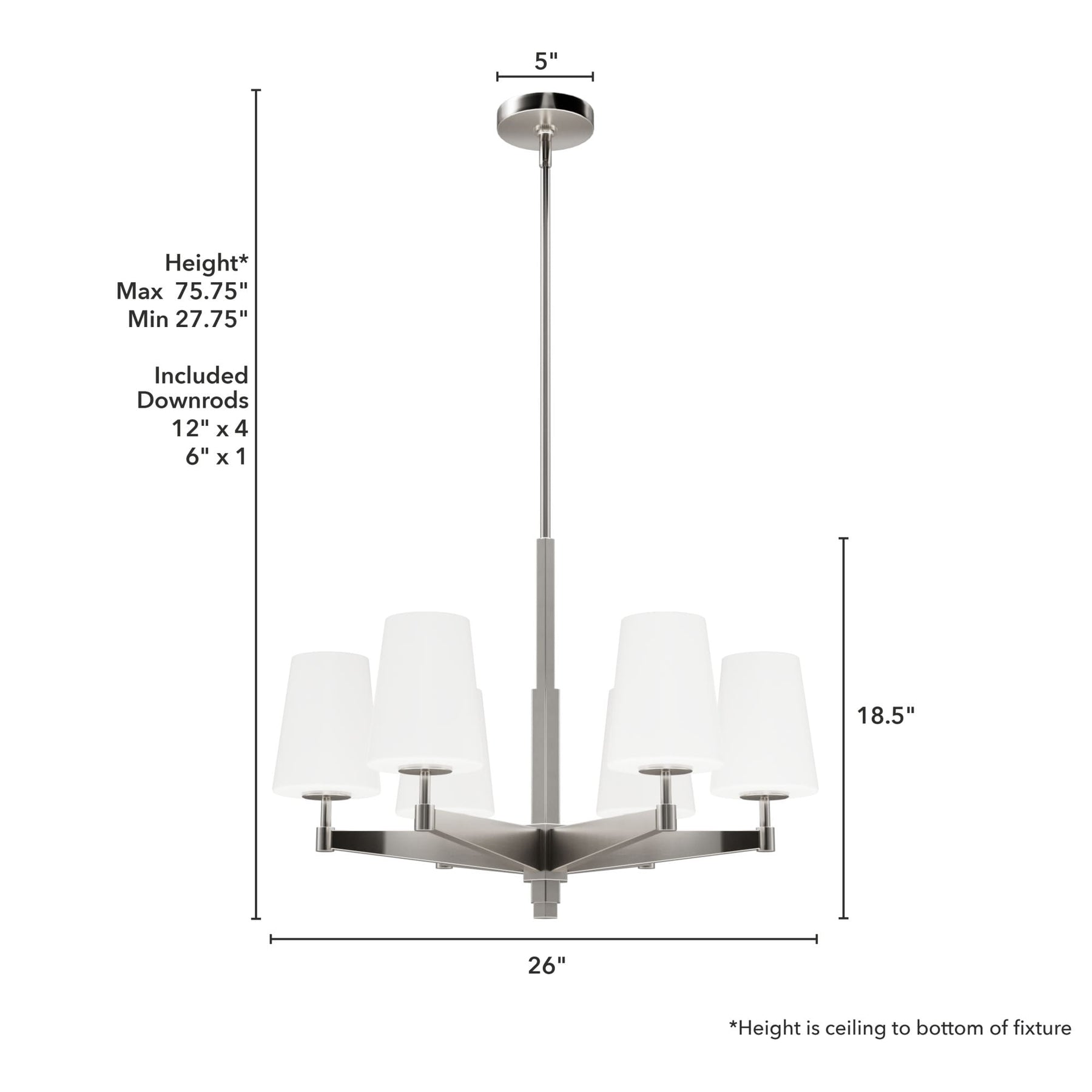 Flexible Installation: Comes with multiple downrods for customizable hanging lengths from 27.75 to 75.75 inches.