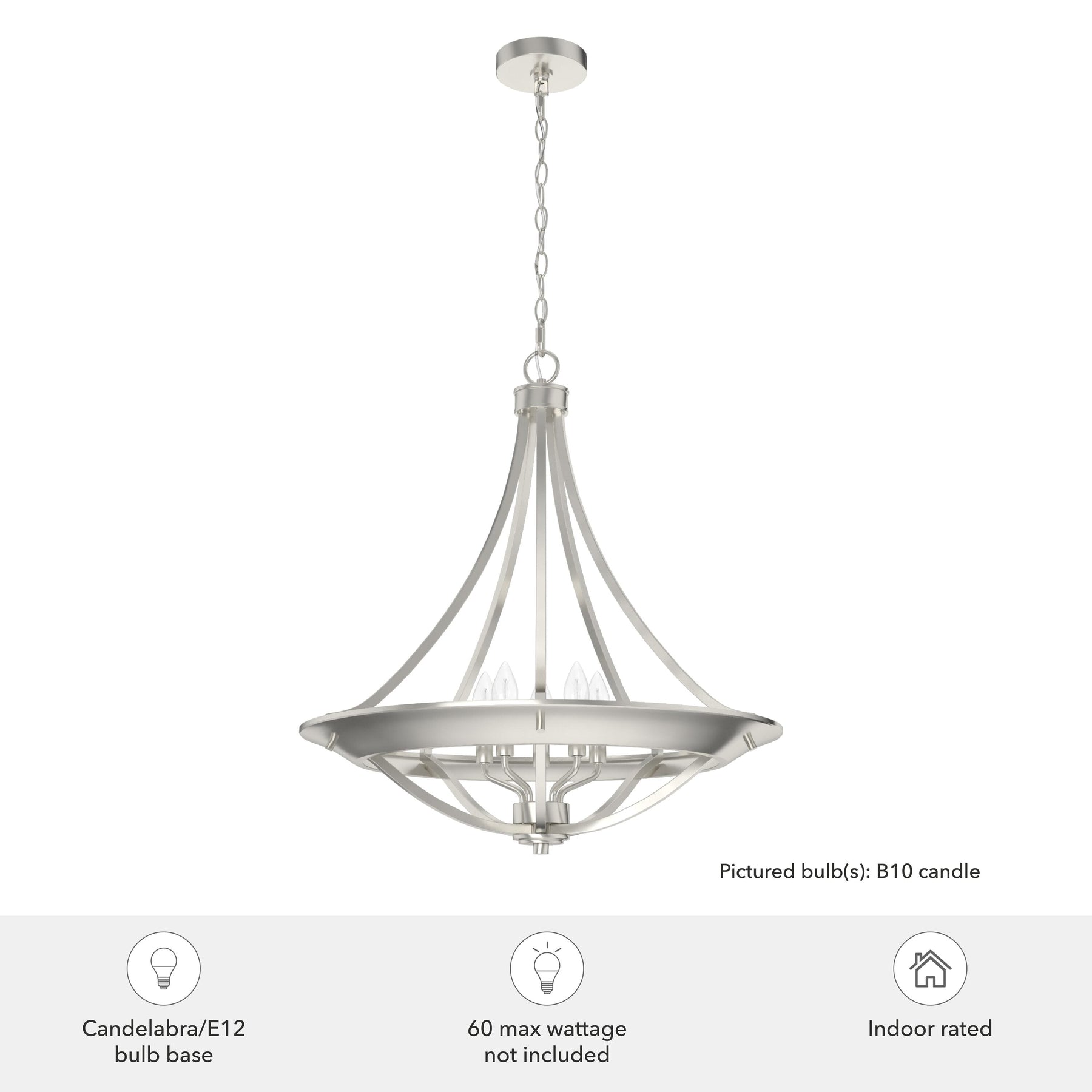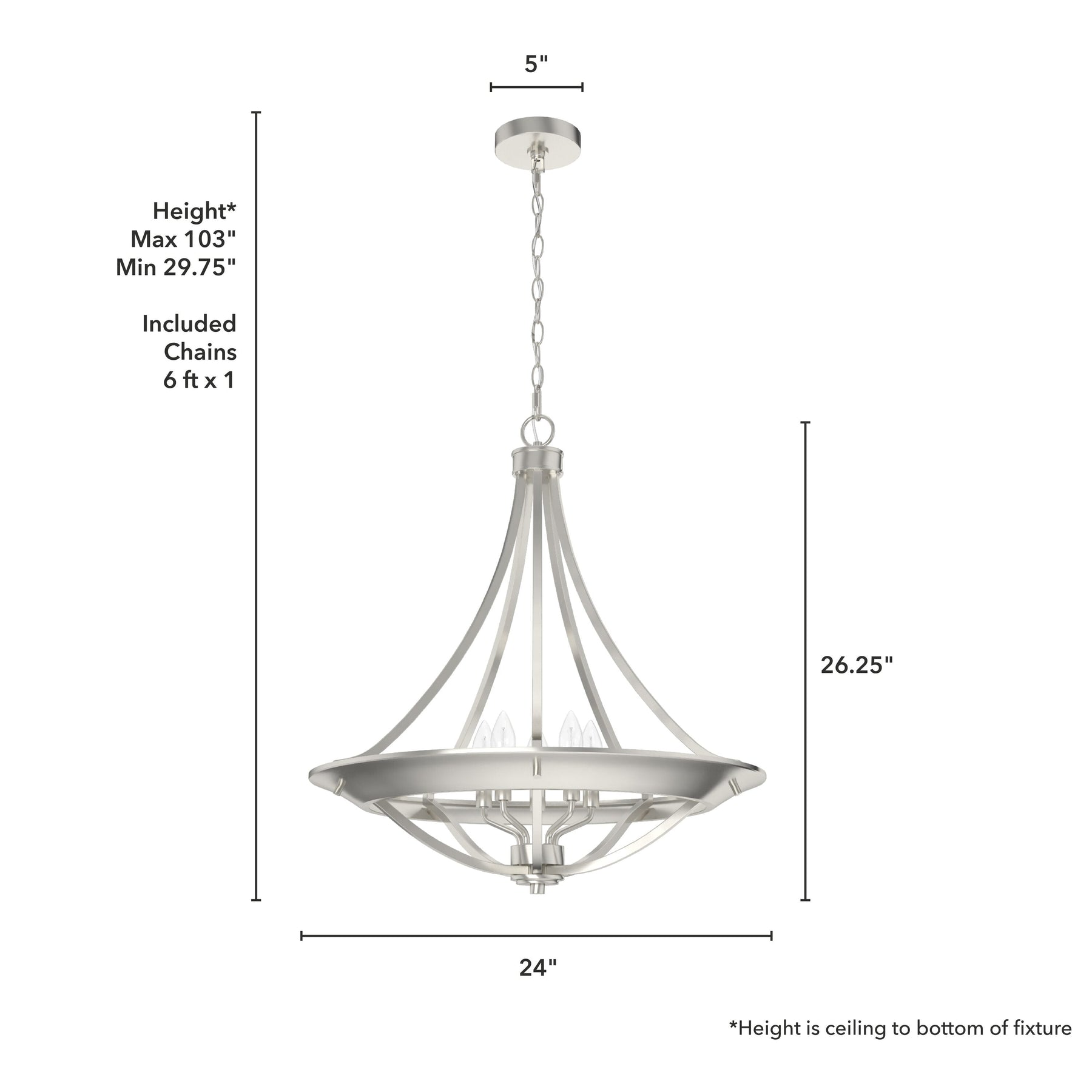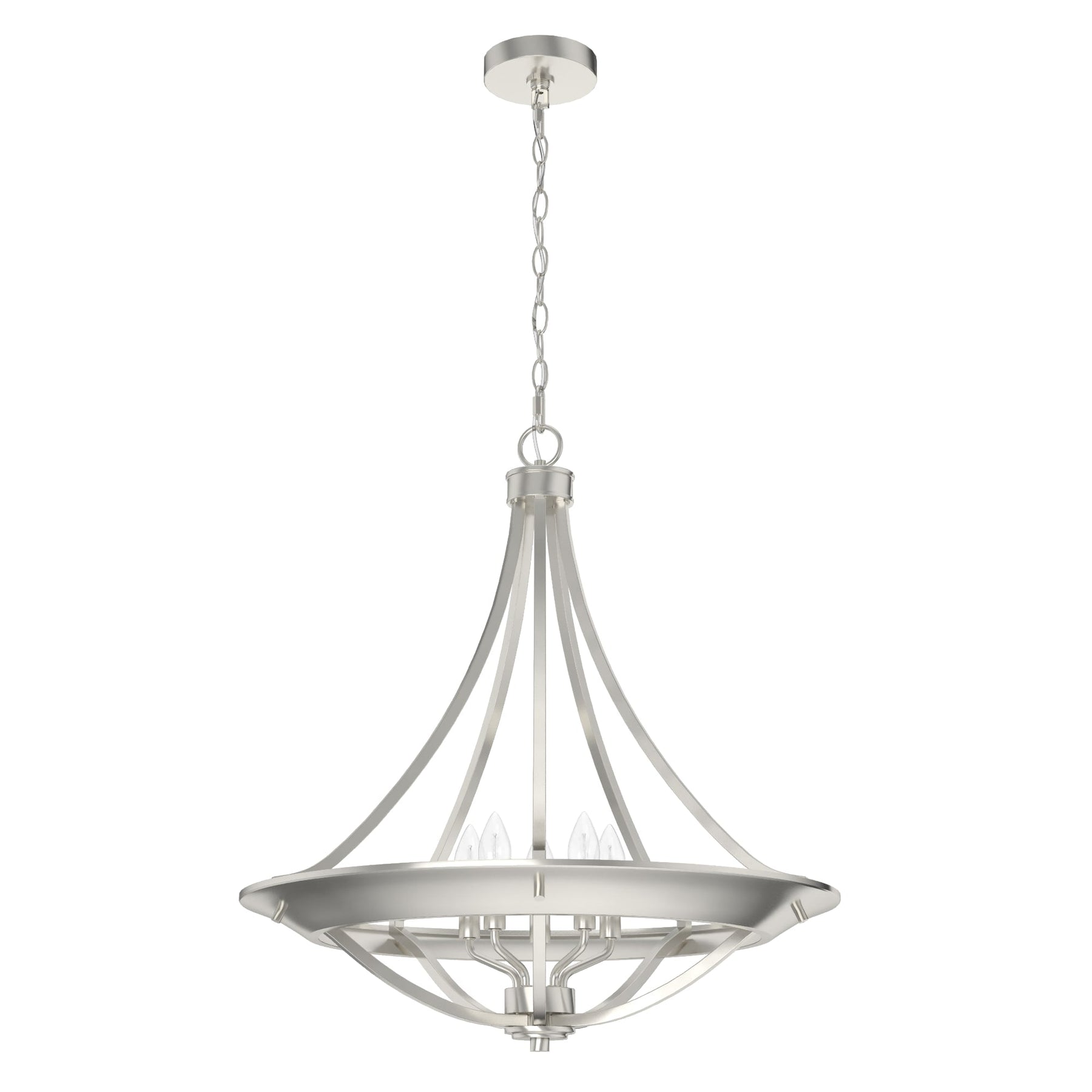 The Hunter Perch Point chandelier envelops your kitchen or dining room in an aura of refined elegance, transforming a daily space into a realm of tranquility. Its brushed nickel finish reflects a timeless charm, accentuating the transitional bowl design that captures both a modern and rustic aesthetic. Place this fixture above your kitchen island for a dramatic focal point, harmoniously blending with varied design elements. Embrace the artistry and sophistication in your home, ensuring each dinner or gathering is highlighted in a luxurious ambiance.
