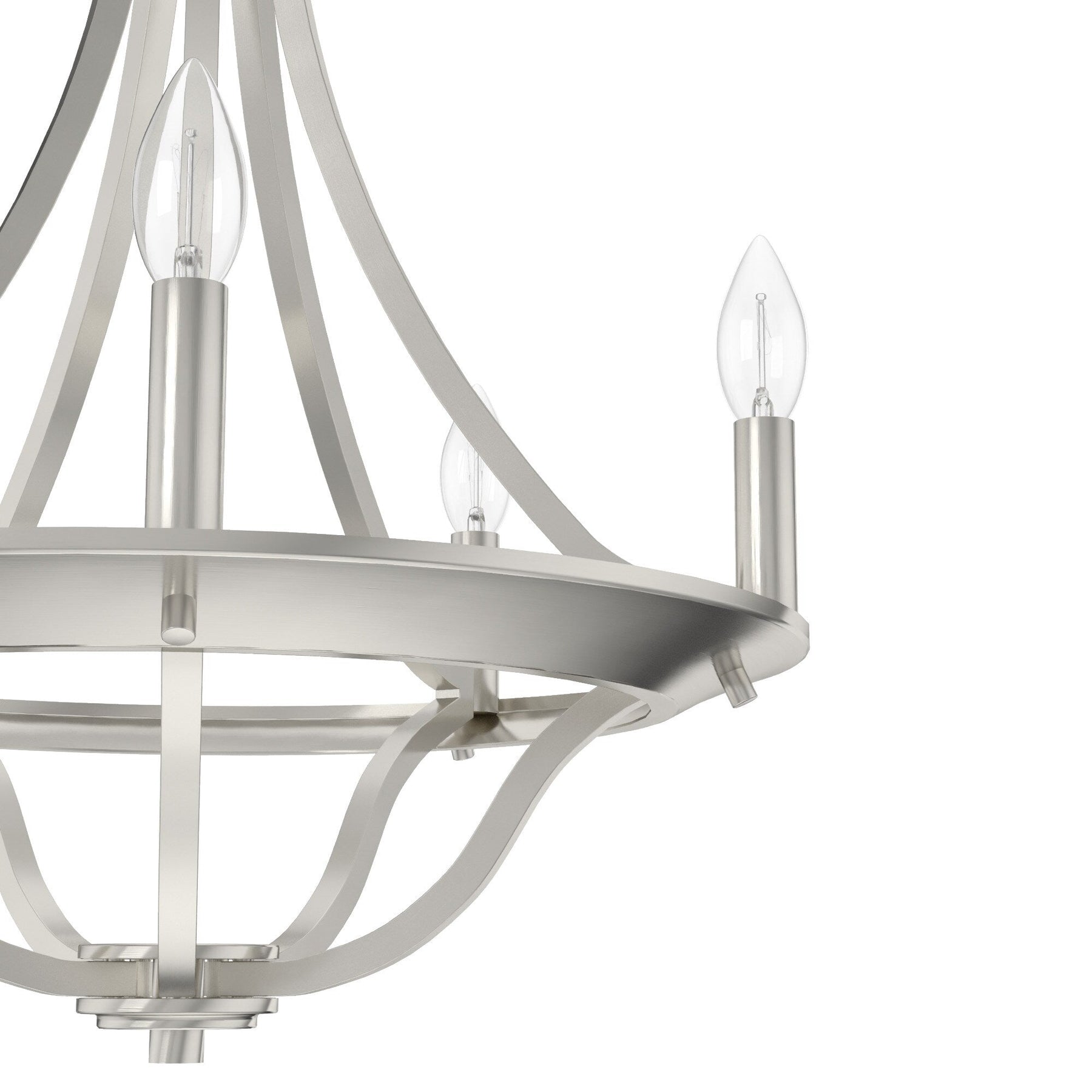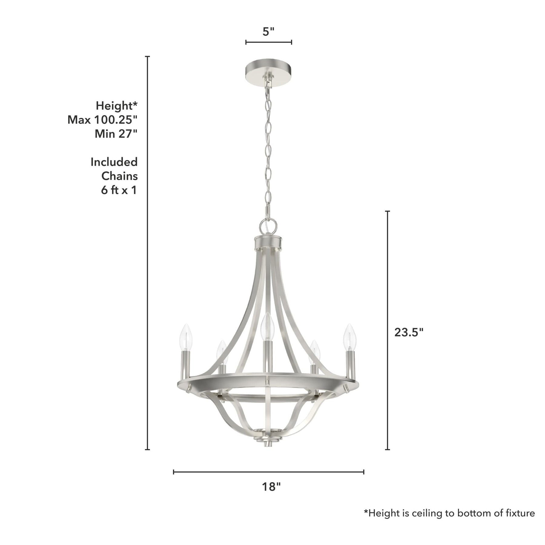 The Hunter Perch Point 5-Light LED Chandelier casts a serene glow that envelops your home in an ambiance reminiscent of chic mountain retreats. Its brushed nickel finish and metal basket design create a striking centerpiece that complements a variety of décor styles. Suspend this masterpiece over your dining table to set the stage for intimate gatherings or in your living room to warm up your everyday moments. Embrace the effortless sophistication of this fixture as it heralds a new era of transitional luxury in your home.