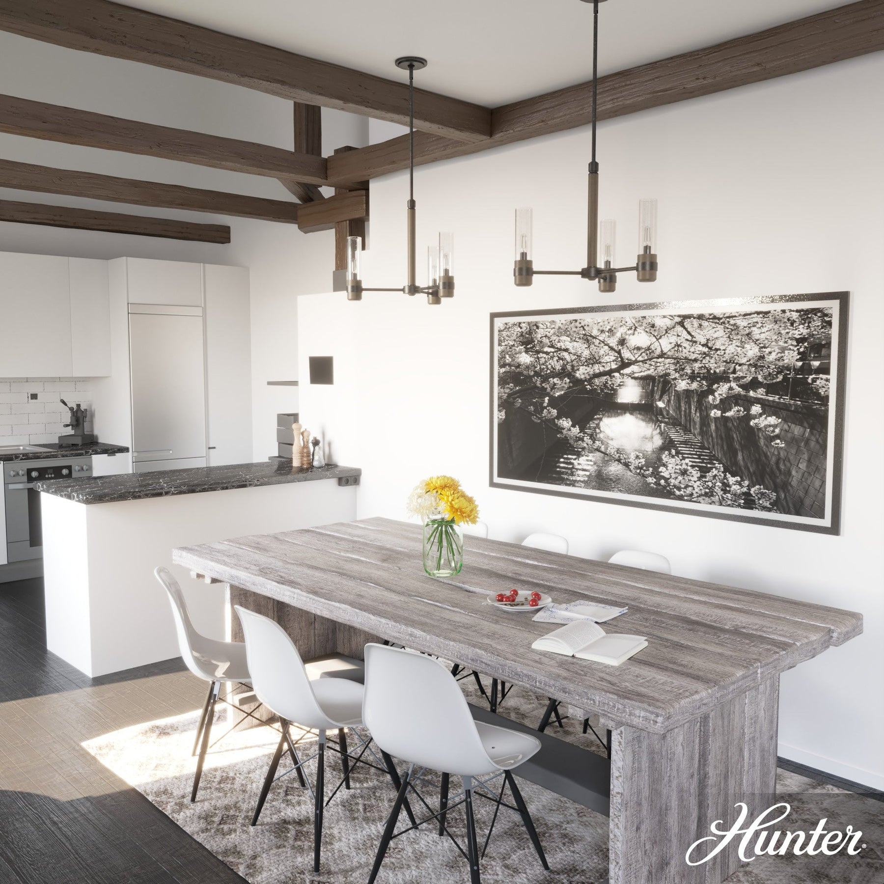 Elevate your home's ambiance with the Hunter River Mill Chandelier and experience the timeless sophistication it brings to your space.