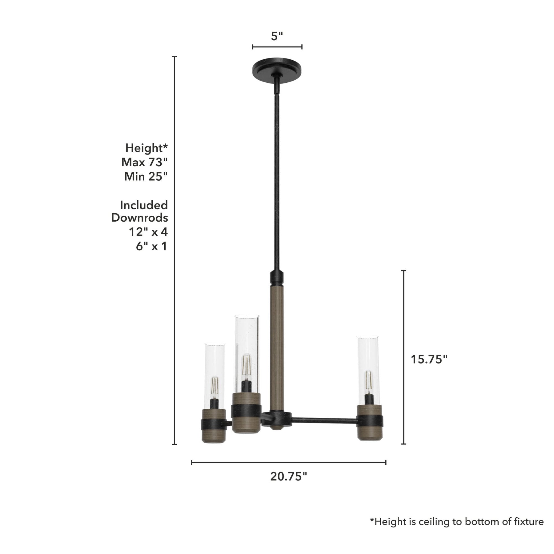 Illuminate your space with the Hunter River Mill 3-Light Matte Black Chandelier, a captivating blend of rustic charm and modern elegance. Featuring a distinctive bare bulb design with seeded glass, this chandelier is perfect for adding a stylishly rugged touch to any room. Easy to install and adaptable to various hanging heights, it brings a warm ambiance and sophisticated aesthetic to your home.