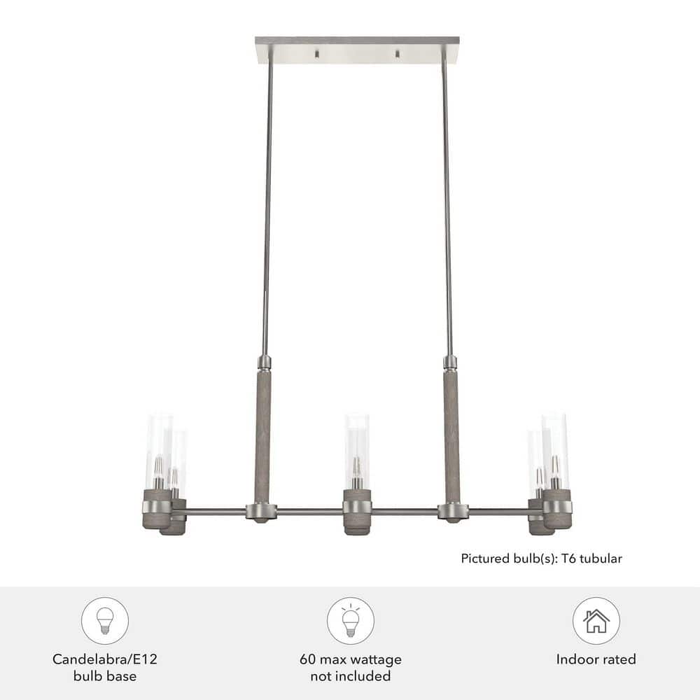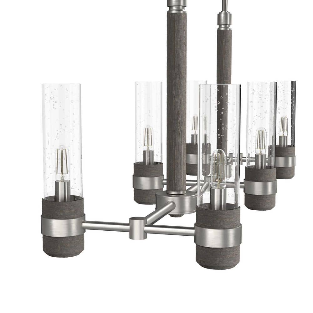 Hunter River Mill 6-Light Brushed Nickel Candlestick Chandelier with Clear Seeded Glass Shades